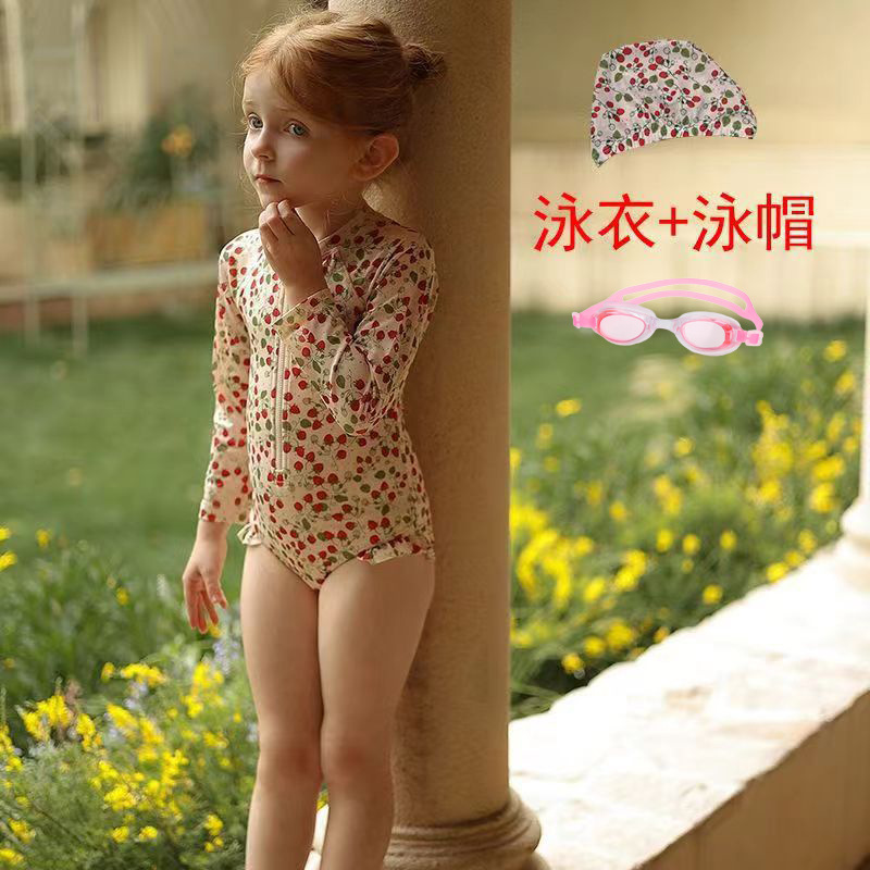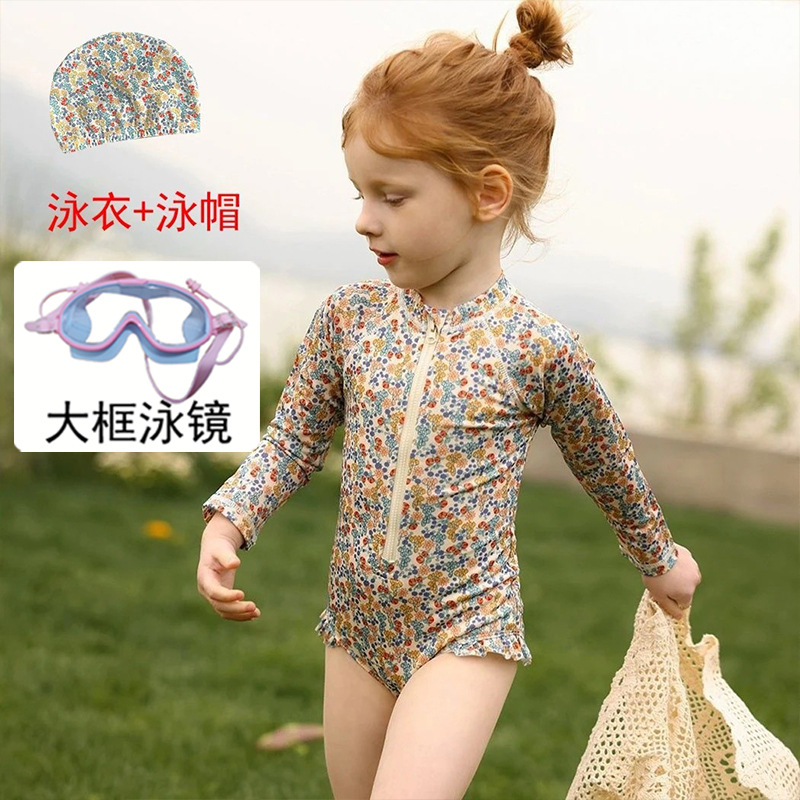 2025 여름 여아 크로스보더 속건성 긴팔 수영복 아기 및 중소형 아동용 세련된 꽃무늬 대외 무역 원피스 수영복스토어 가기
