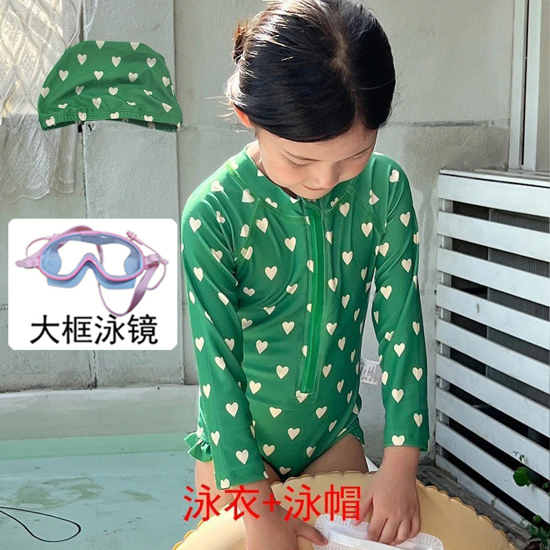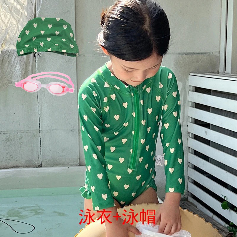 • 6031#그린 러브 + 수영모 + 작은 수영 고글