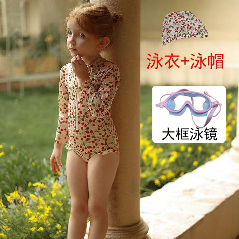 • 6031#전체에 프린트된 딸기 + 수영모 + 작은 수영 고글