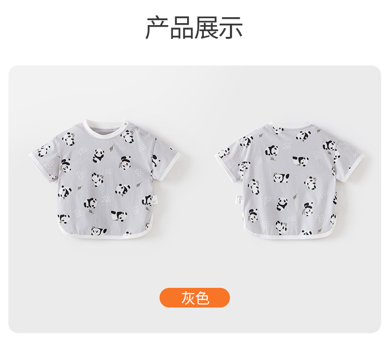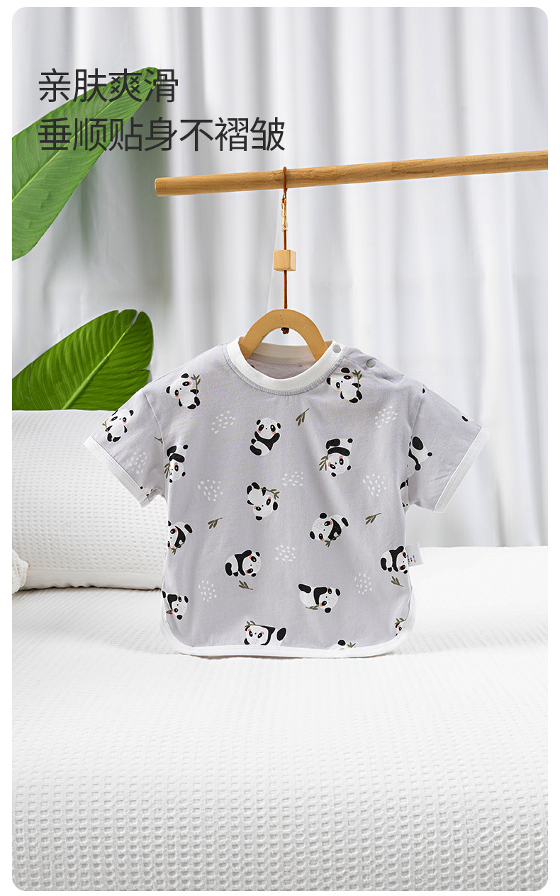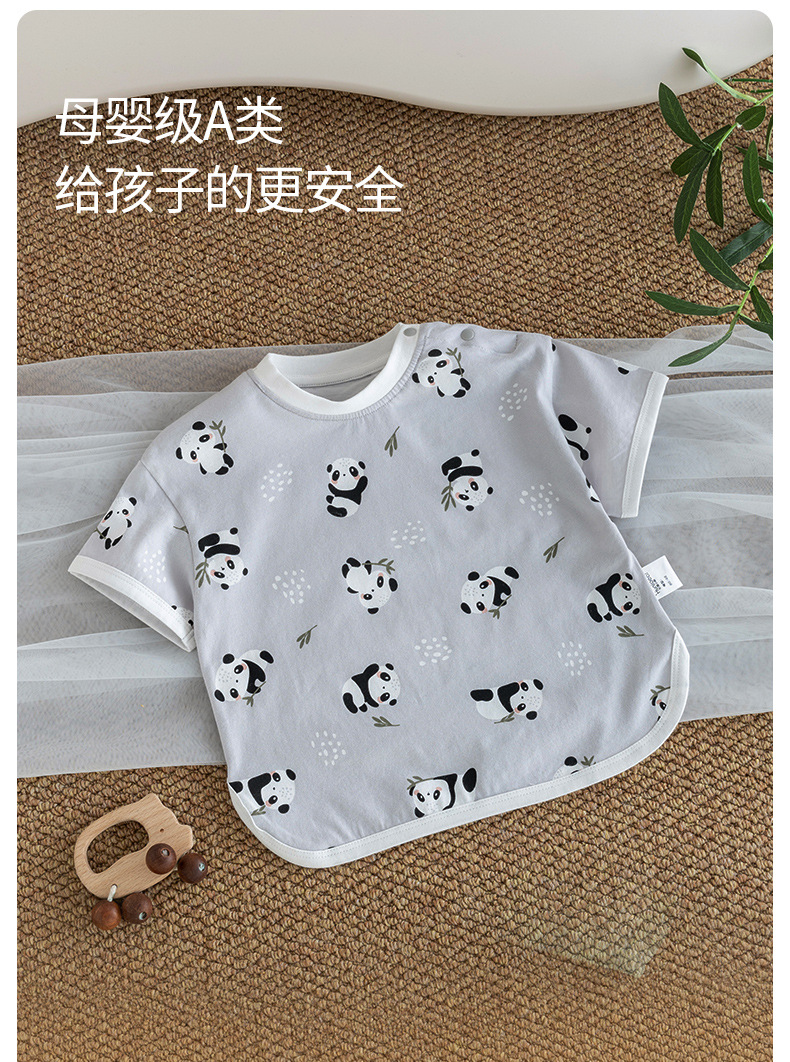 아기 옷 순수한면 반팔 여름 얇은 소년 둥근 목 티셔츠 어린이 마을 밖 만화 싱글 탑 여름 옷스토어 가기