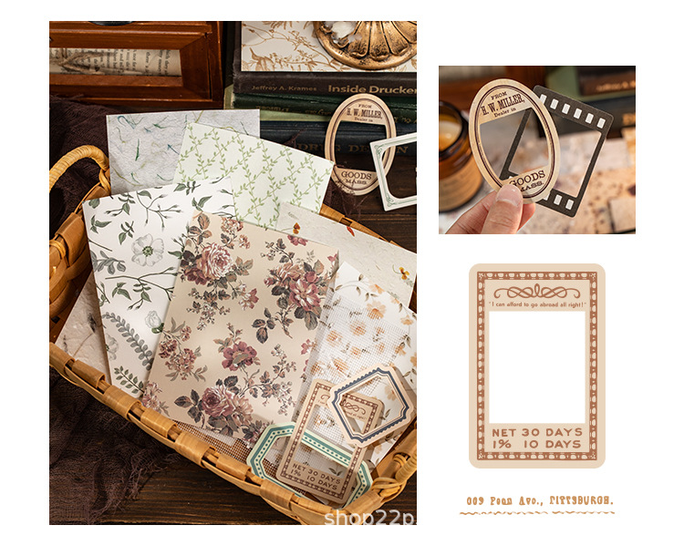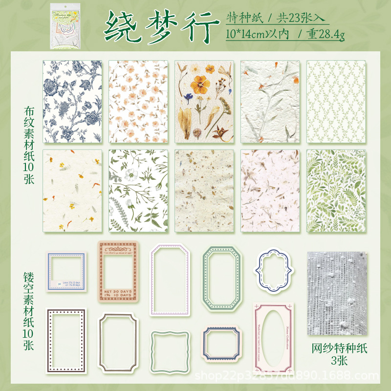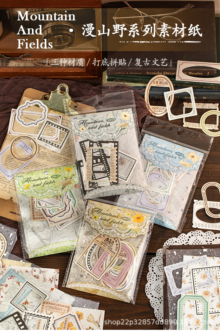 언어 레저 소재 종이 확산 산 야생 시리즈 복고풍 메쉬 중공 손 계정 통증 가방 DIY 배경 백킹 콜라주스토어 가기