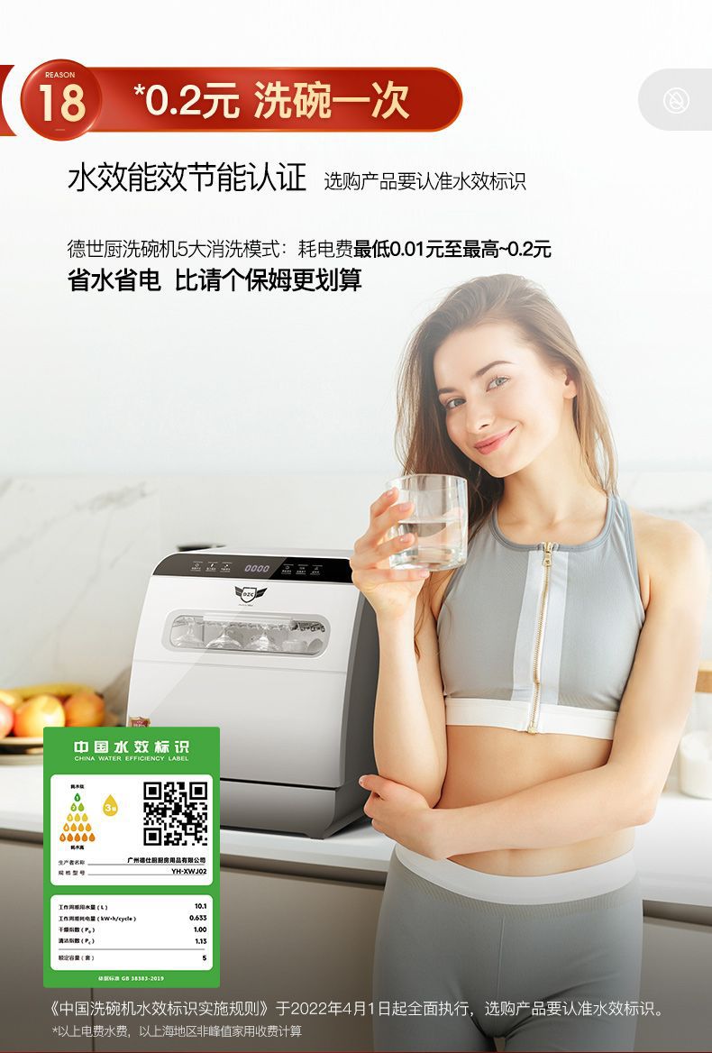 지능형 이중 스프레이 건조 데스크탑 가정용 위아래 소독 내장형 식기 세척기 Q8 소형 8 DeShi Kitchen 자동스토어 가기