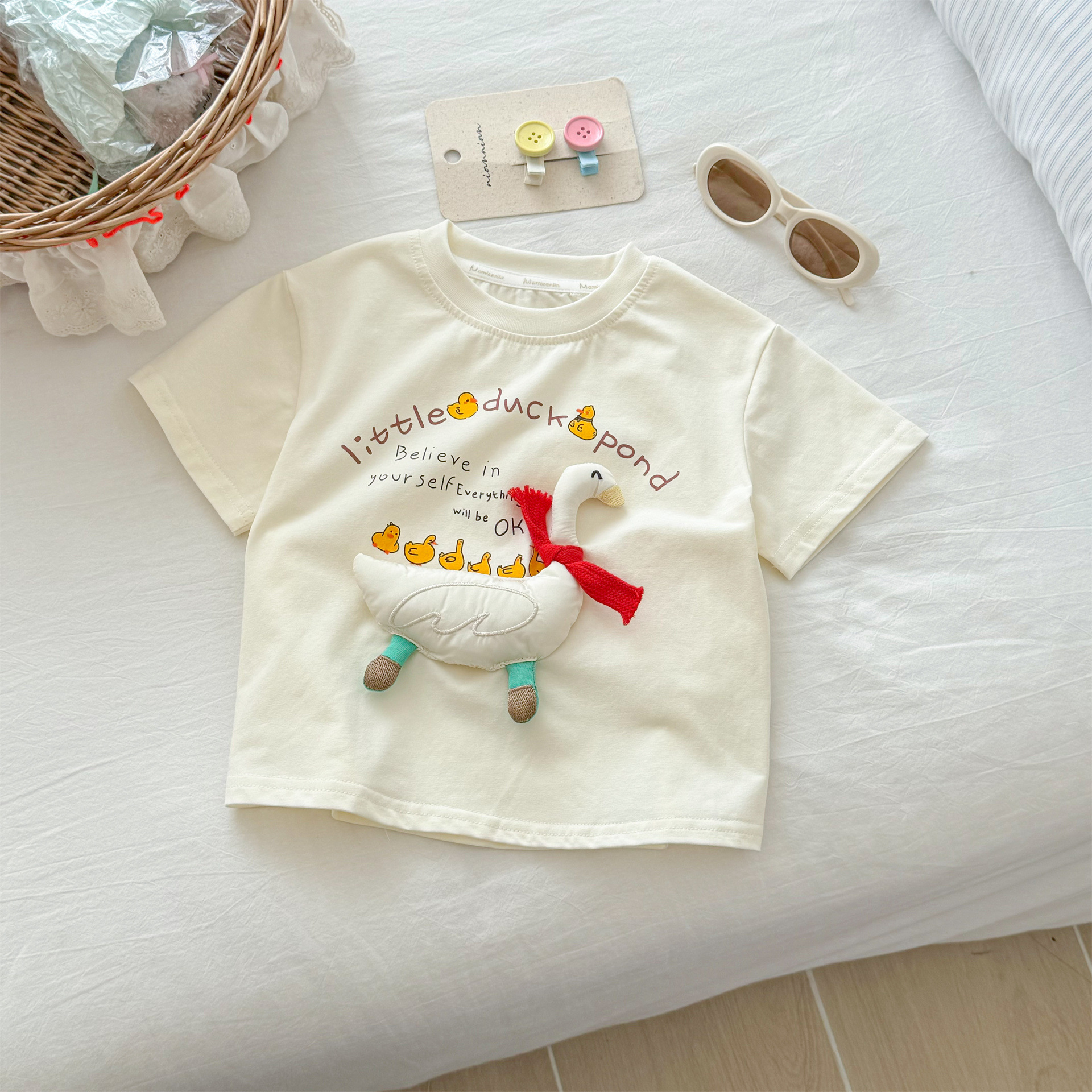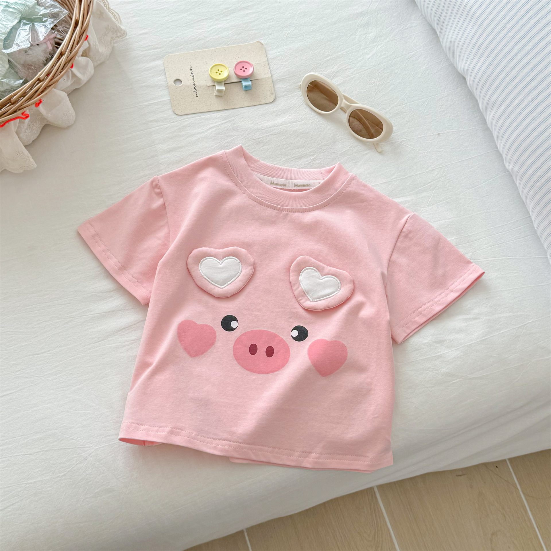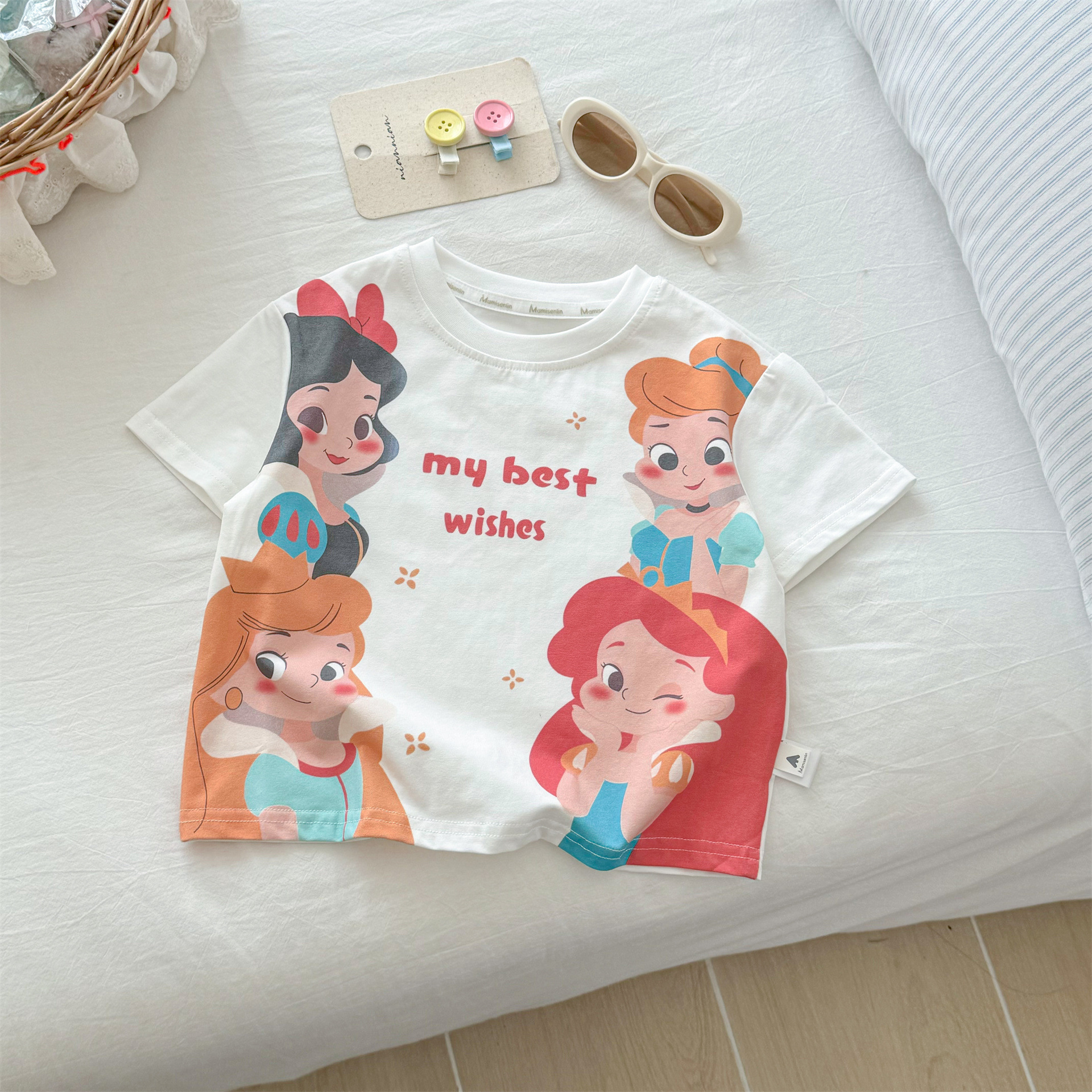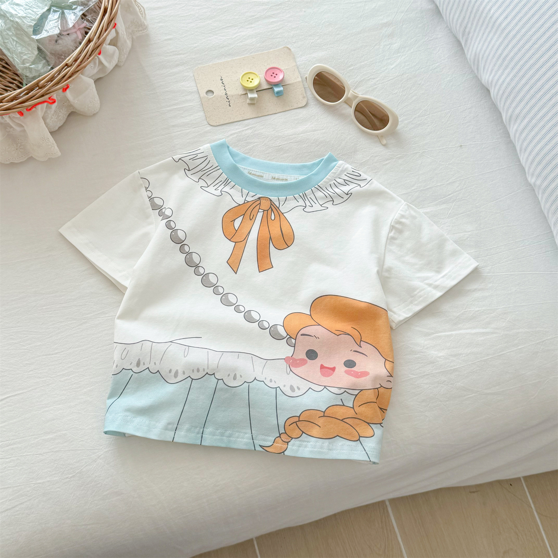 어린이 면 서양식 티셔츠 2025 여름 새로운 레이스 소녀 인쇄 귀여운 최고 달콤한 짧은 소매 티셔츠 트렌디스토어 가기