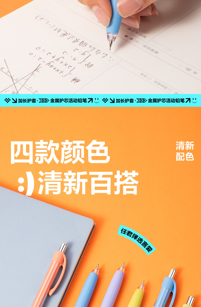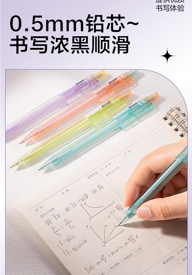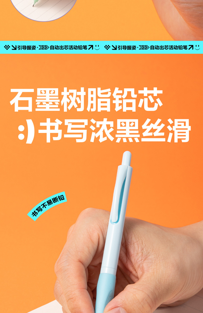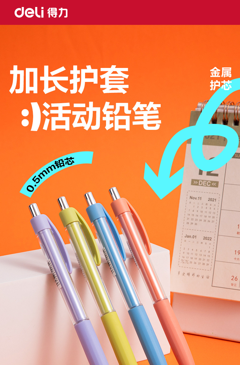 델리 SH186 프레스 자동연필 연속심 그립패드 0.5 자동펜 소프트글루 초등학생 자동연필