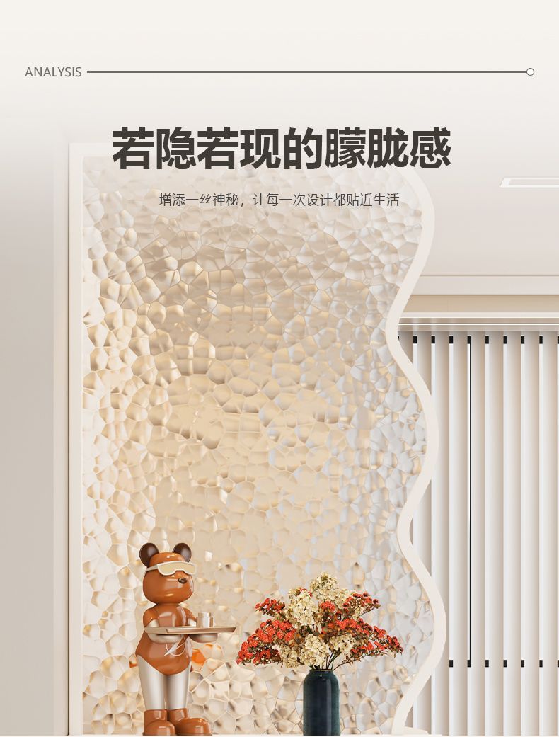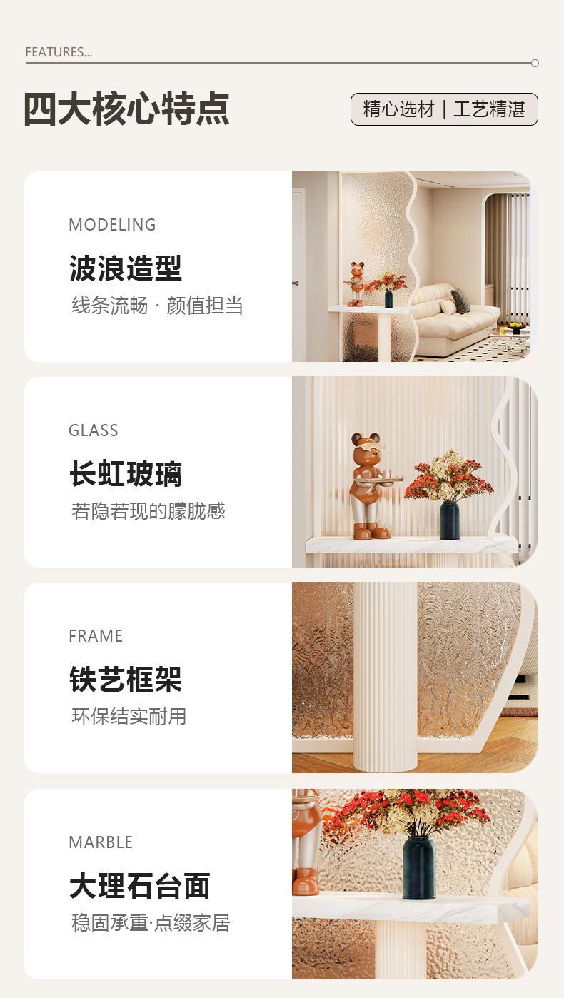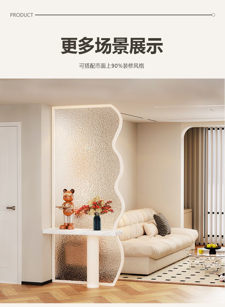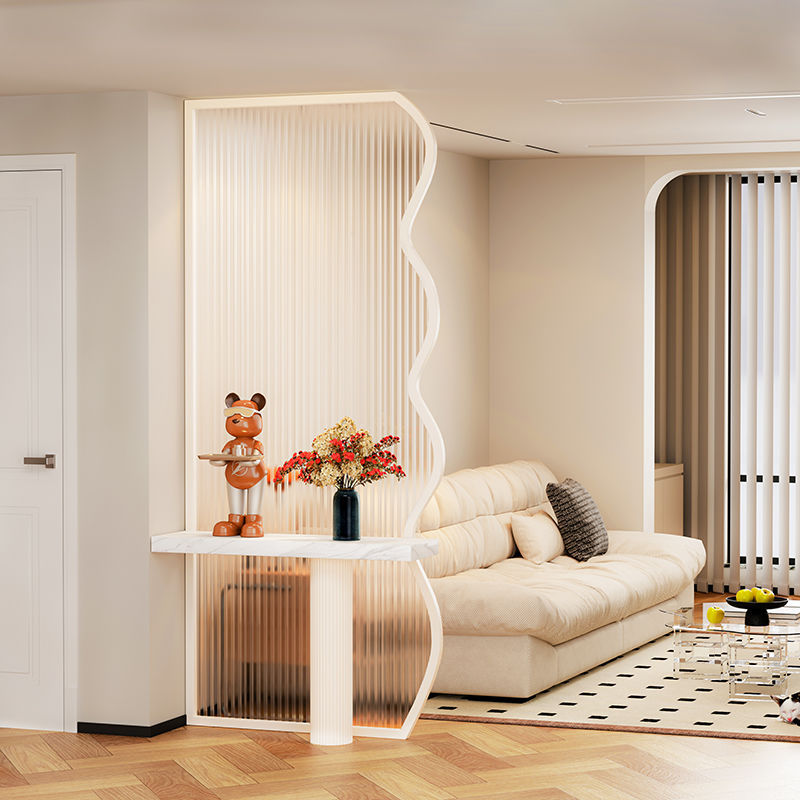 크림 스타일의 예술적인 유리 스크린, 거실 장식, 현관 창의적인 차단, 현대적인 미니멀리스트 유리 파티션스토어 가기