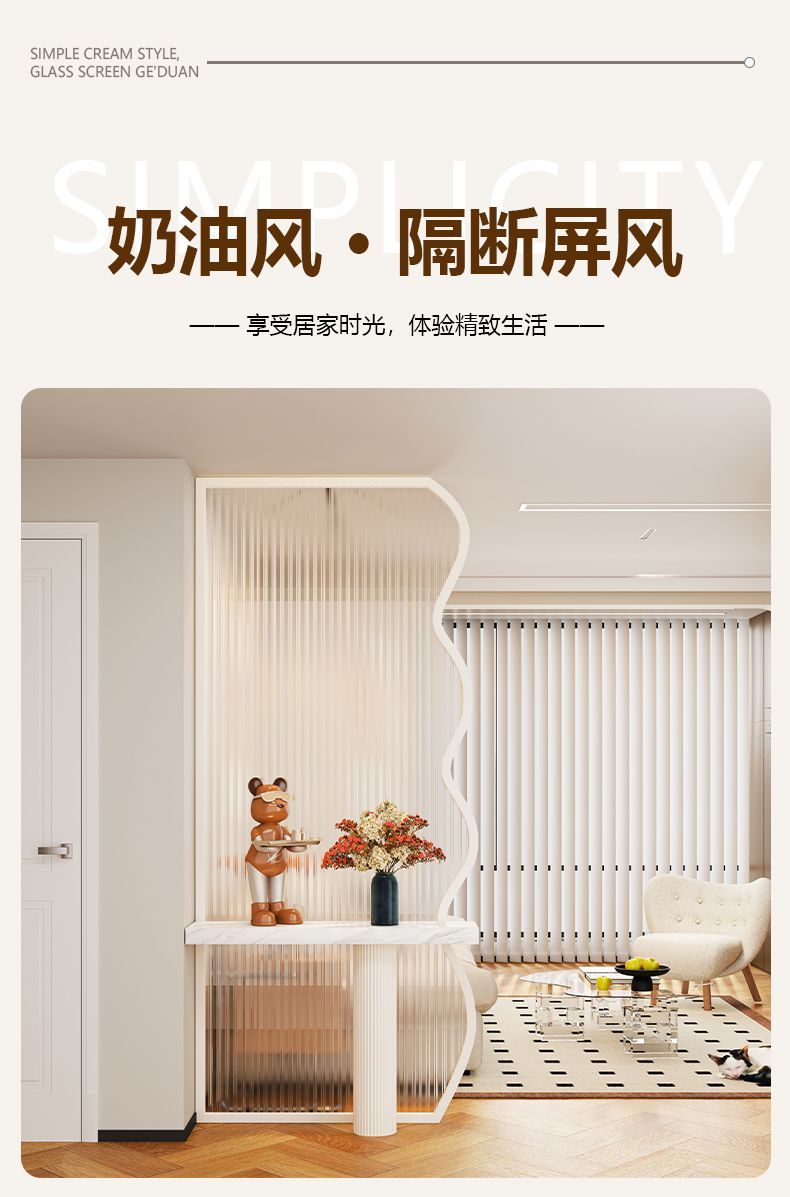 크림 스타일의 예술적인 유리 스크린, 거실 장식, 현관 창의적인 차단, 현대적인 미니멀리스트 유리 파티션