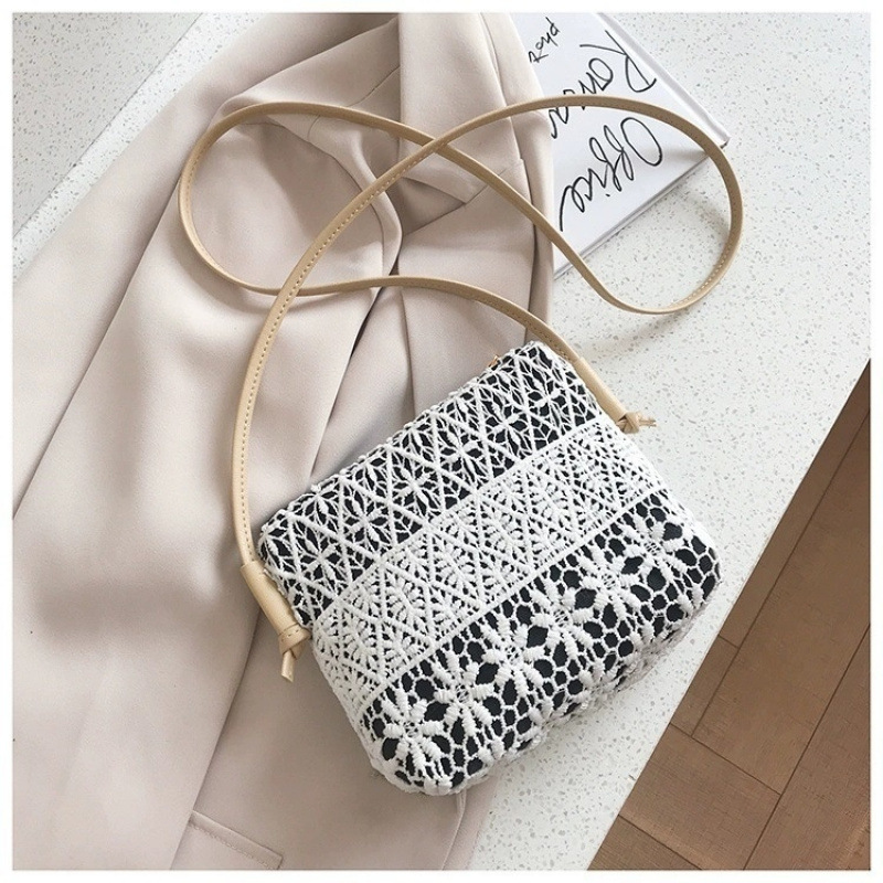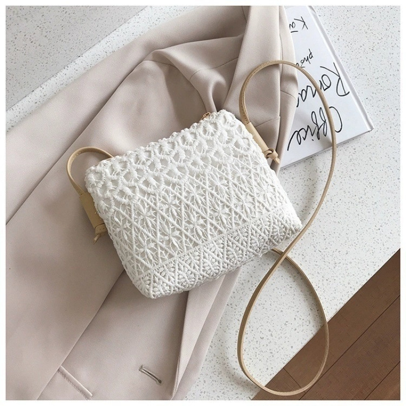 包包手提斜挎包2024款编织包森系夏季大容量包百搭单肩蕾丝小方包
