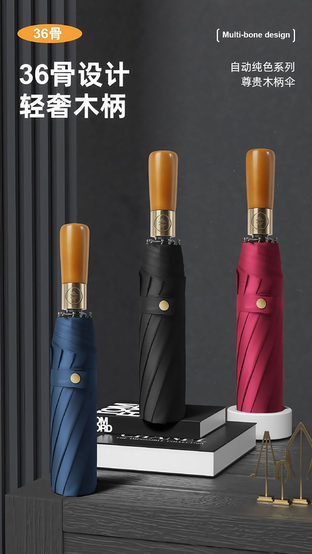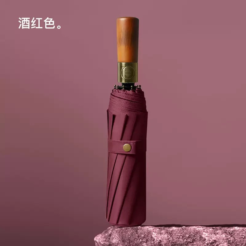 고급 솔리드 우드 핸들 자동 우산 추가 두껍게 강화 된 남성 접이식 우산 맑고 비오는 우산 공장스토어 가기