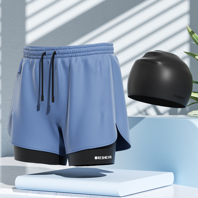 남성용 수영 팬츠, 대형, 더블 레이어, 루즈, 속건성 비치 팬츠, 전문적이고 당황스러운 온천 수영복 세트 장비