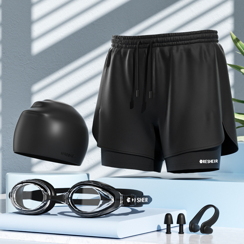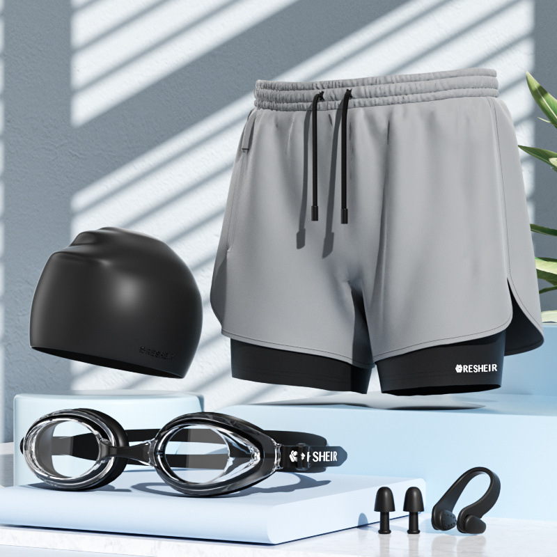 • 고품질 회색 수영 트렁크 + 실리콘 수영 모자
