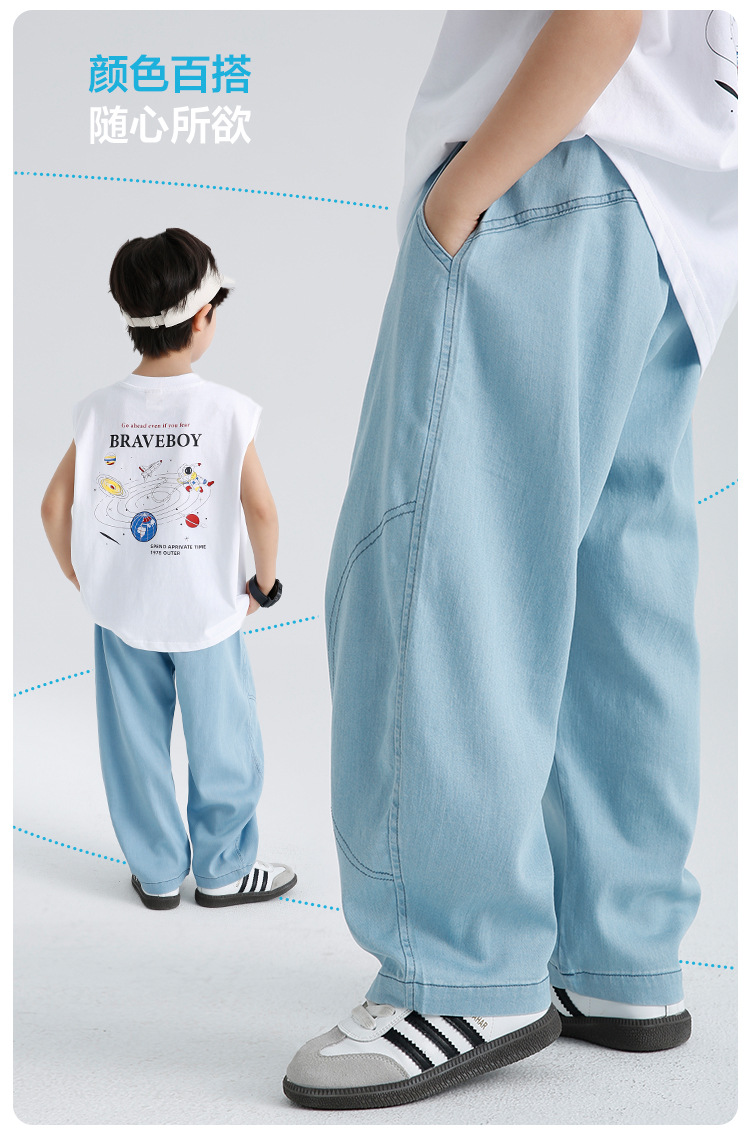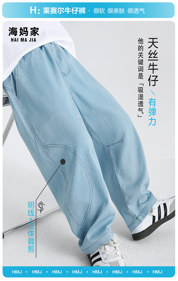 Haima Home 2025 여름 새 소년 Lyocell Tiansi 안티 모기 바지 소녀 여름 바지 얇은 큰 아이들