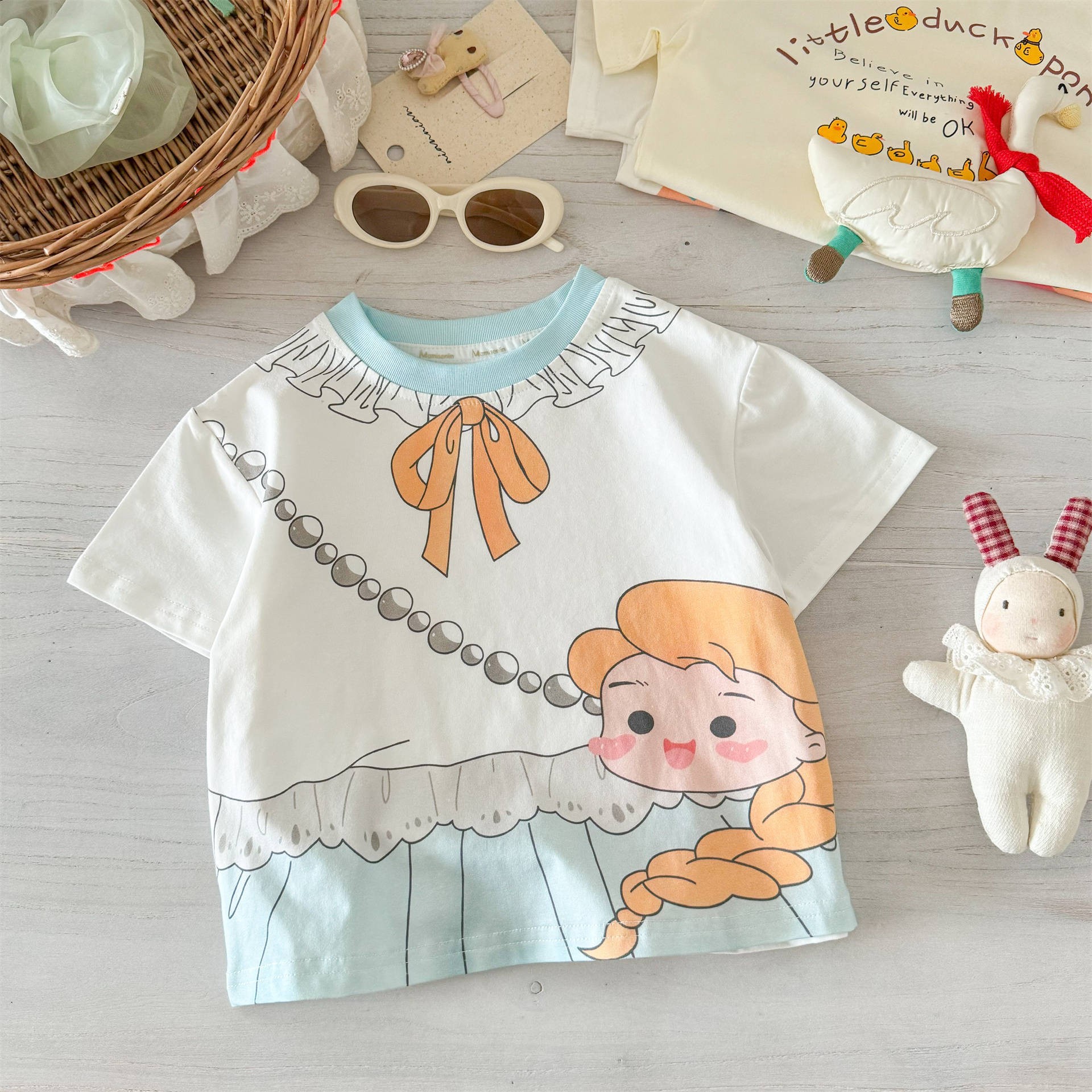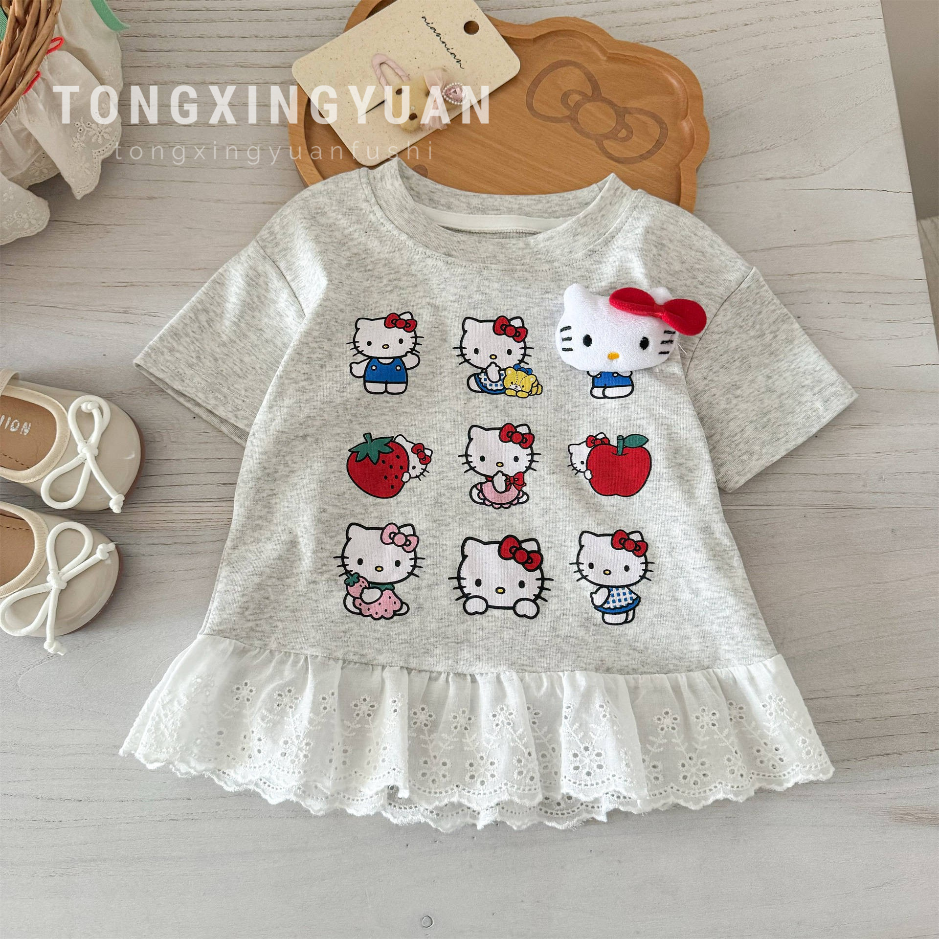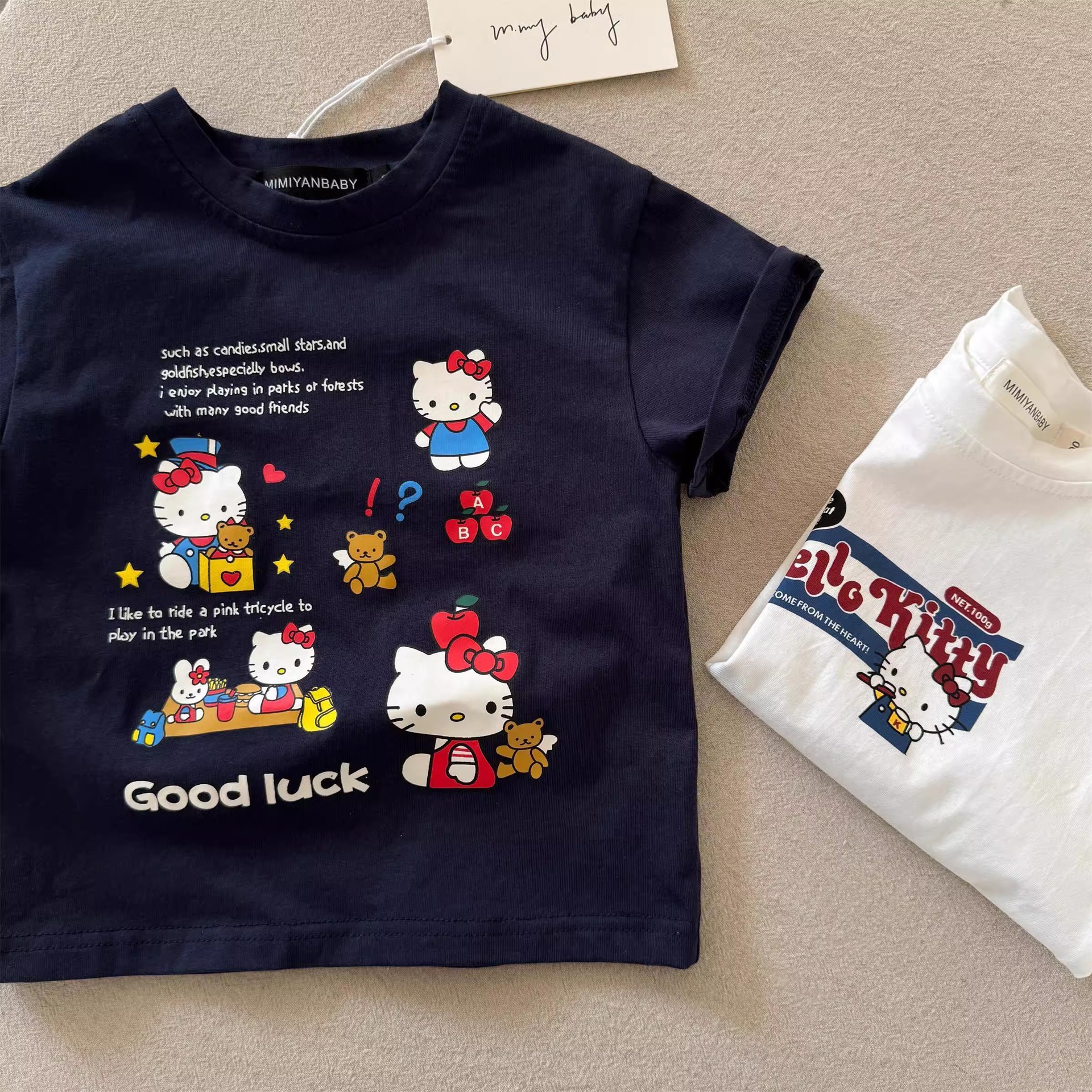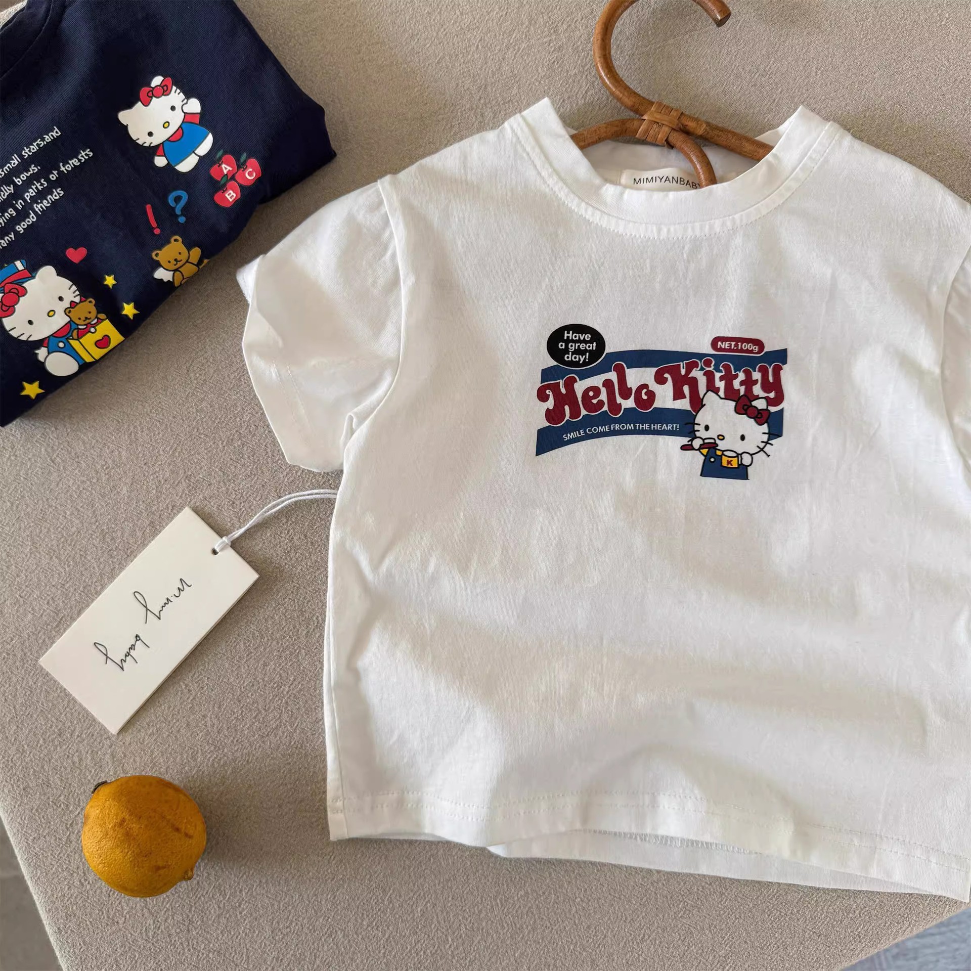 Tongxingyuan 여자 반팔 티셔츠 여름 서양식 아기 탑 연 고양이 새로운 탑 스위트 스타일베이스 티셔츠