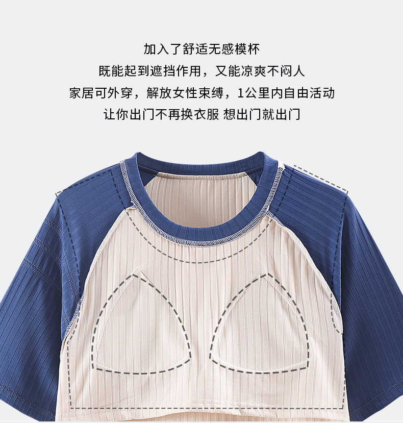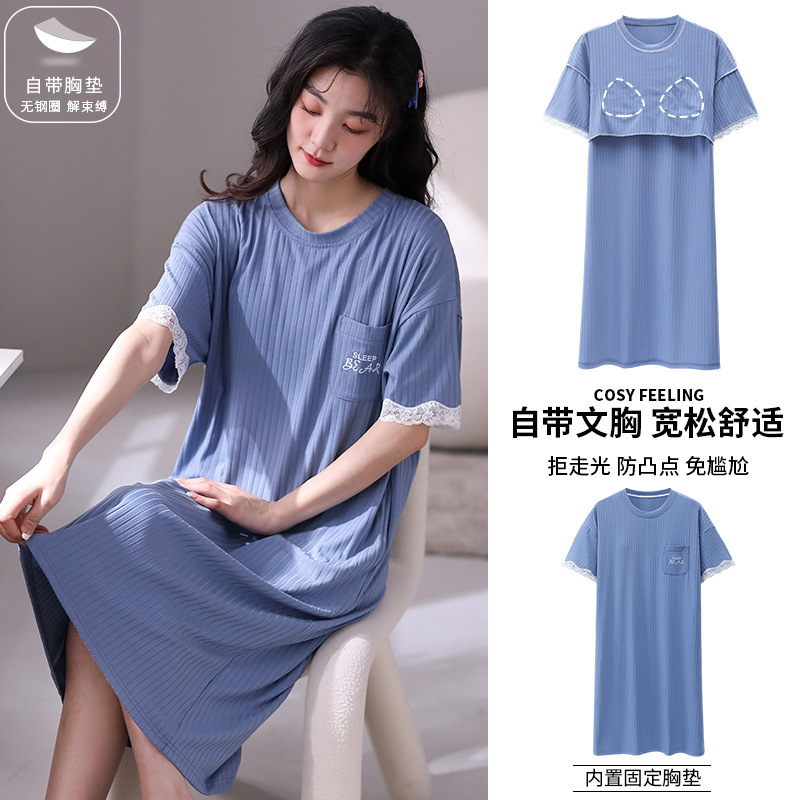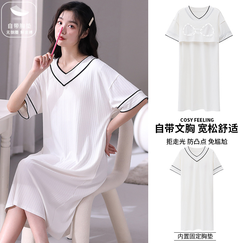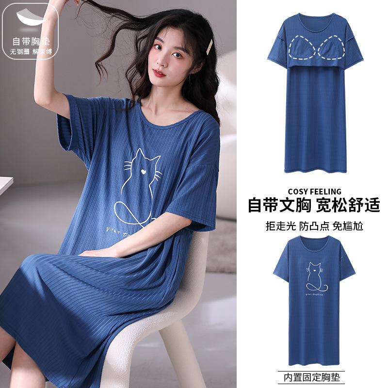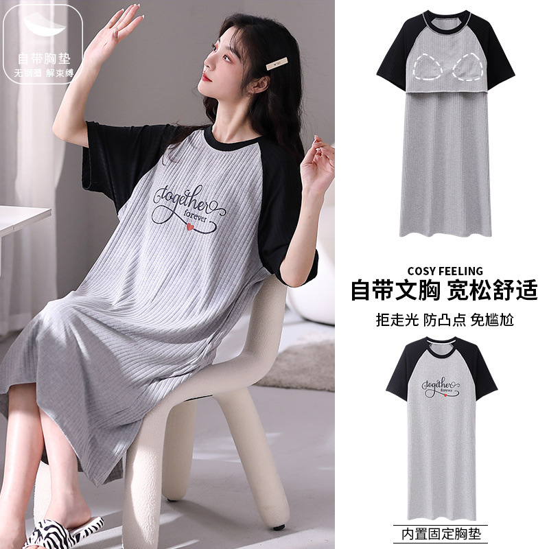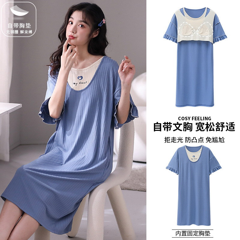 모달 2025 신상 여름 잠옷, 반팔 한국식, 귀엽고 상큼한 가슴 패드가 내장된 잠옷, 홈웨어스토어 가기