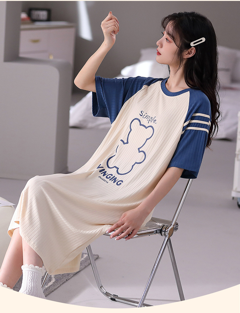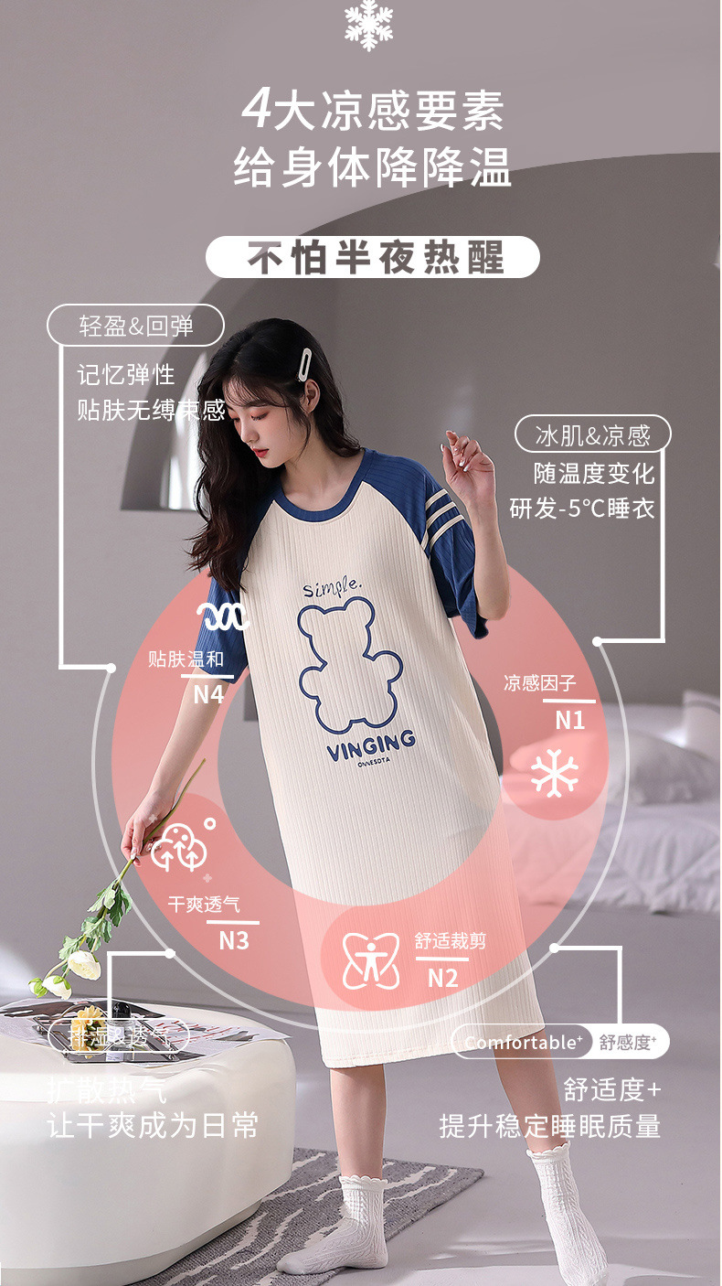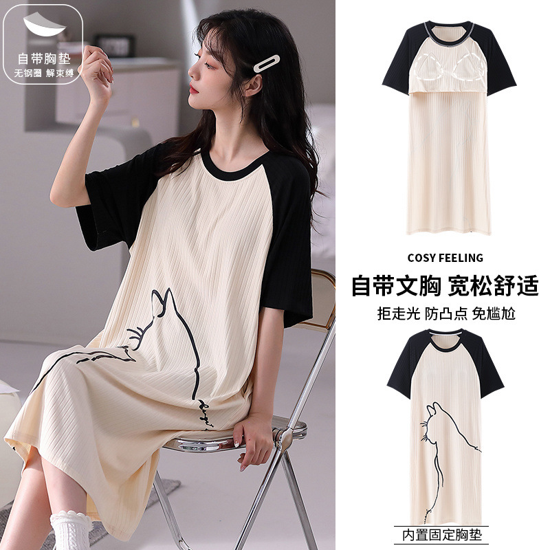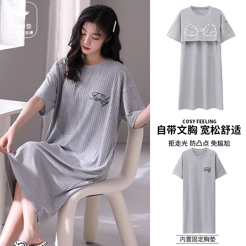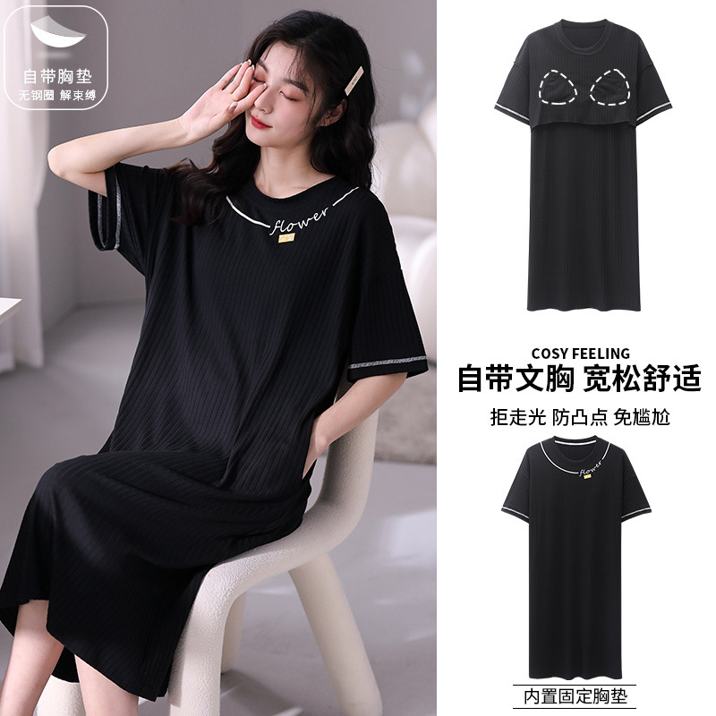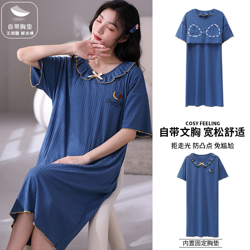 모달 2025 신상 여름 잠옷, 반팔 한국식, 귀엽고 상큼한 가슴 패드가 내장된 잠옷, 홈웨어스토어 가기