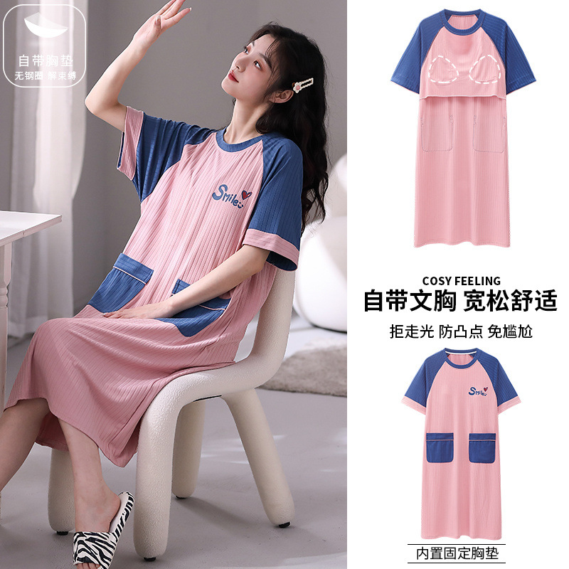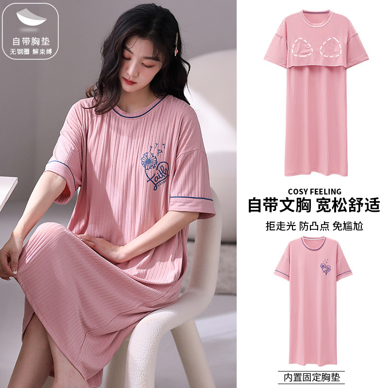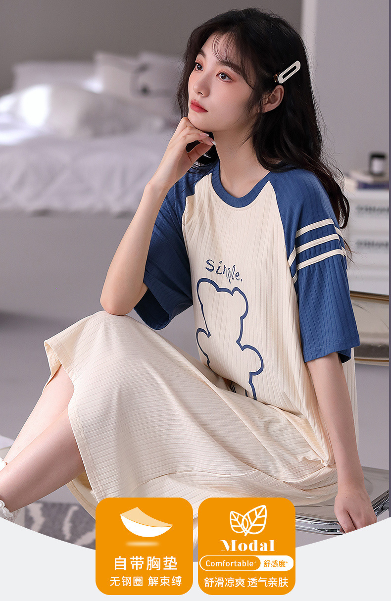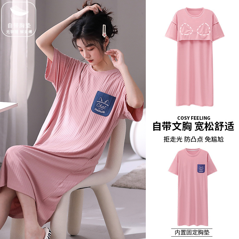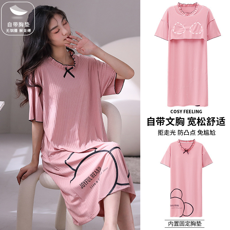 모달 2025 신상 여름 잠옷, 반팔 한국식, 귀엽고 상큼한 가슴 패드가 내장된 잠옷, 홈웨어