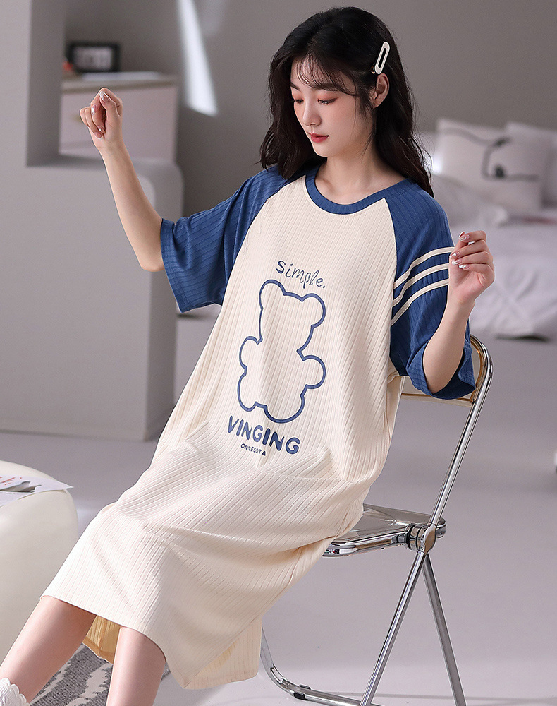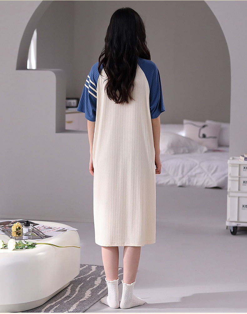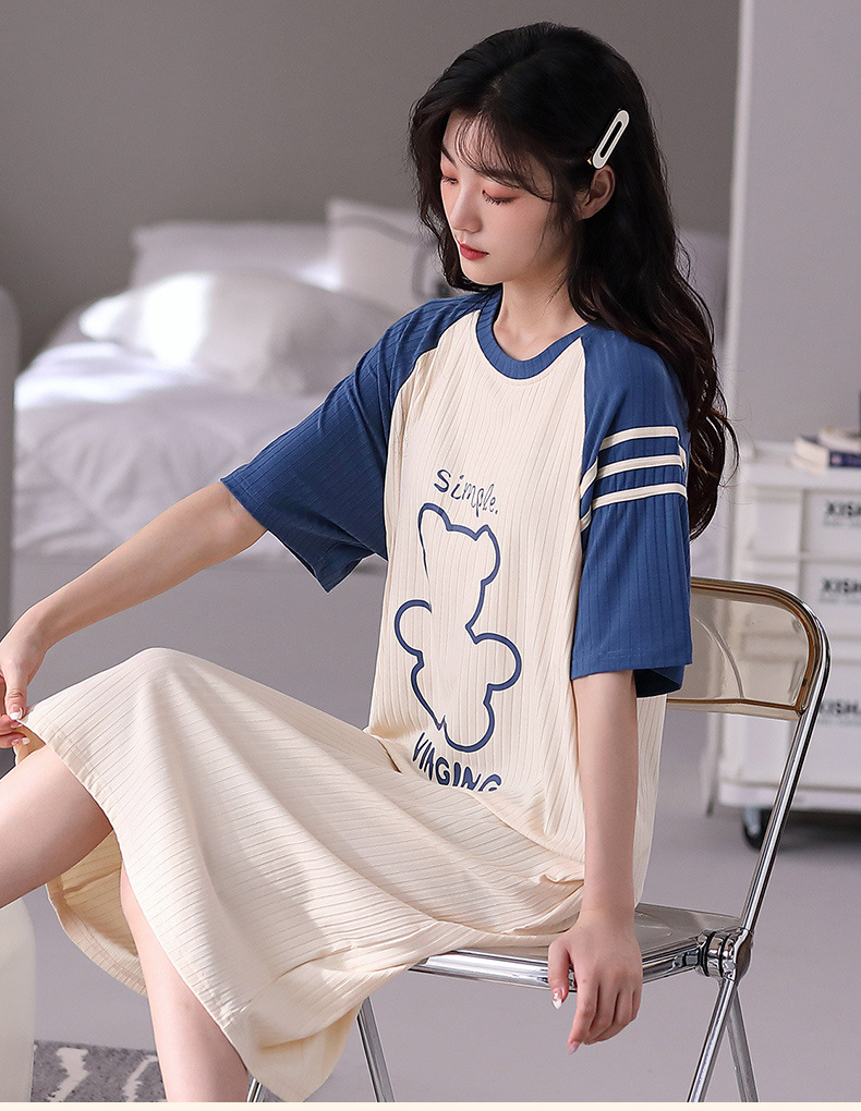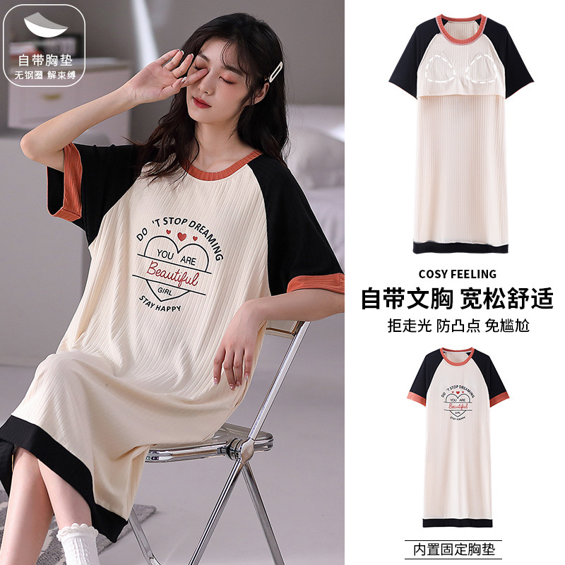 모달 2025 신상 여름 잠옷, 반팔 한국식, 귀엽고 상큼한 가슴 패드가 내장된 잠옷, 홈웨어