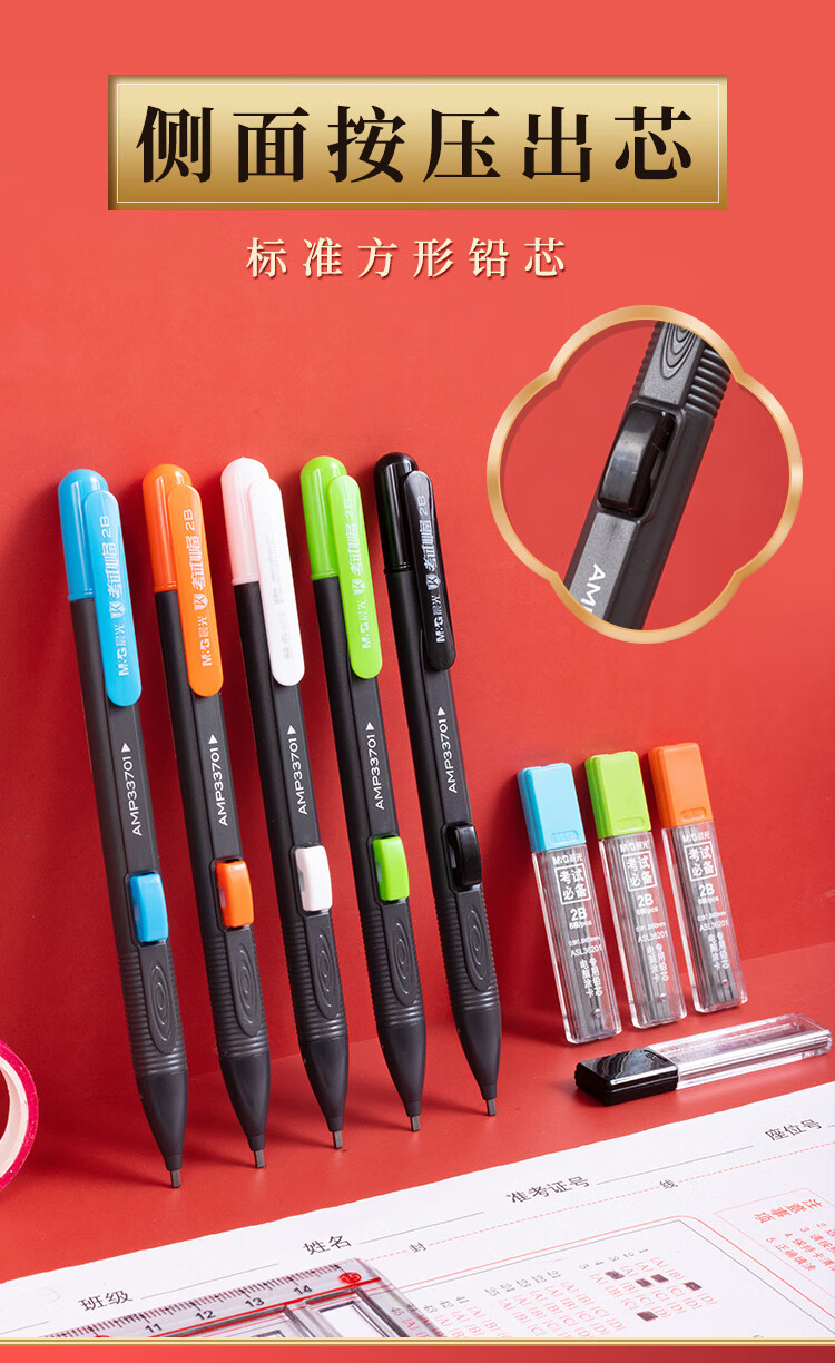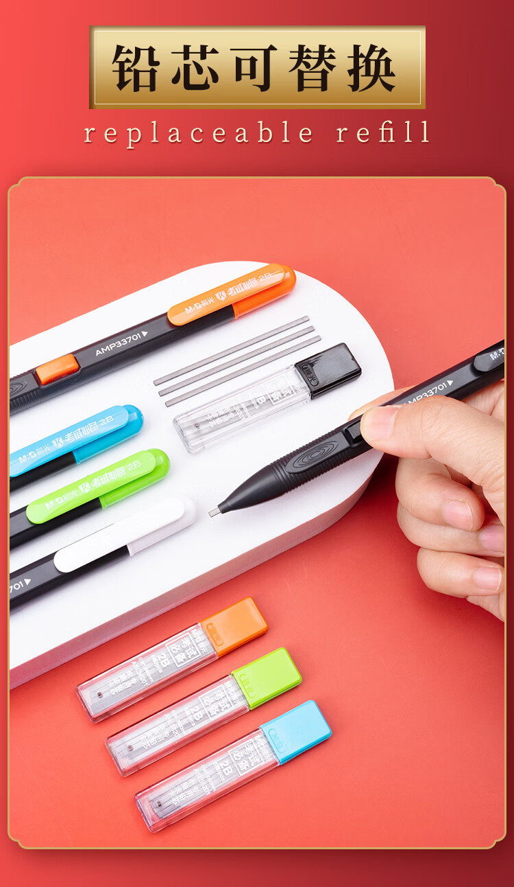 모닝라이트 카드 코팅 자동연필 시험 필수품 AMP33701 검정색 2B 카드 코팅은 흔들리지 않고 안정적이며 시험장에 좋은 도우미입니다.