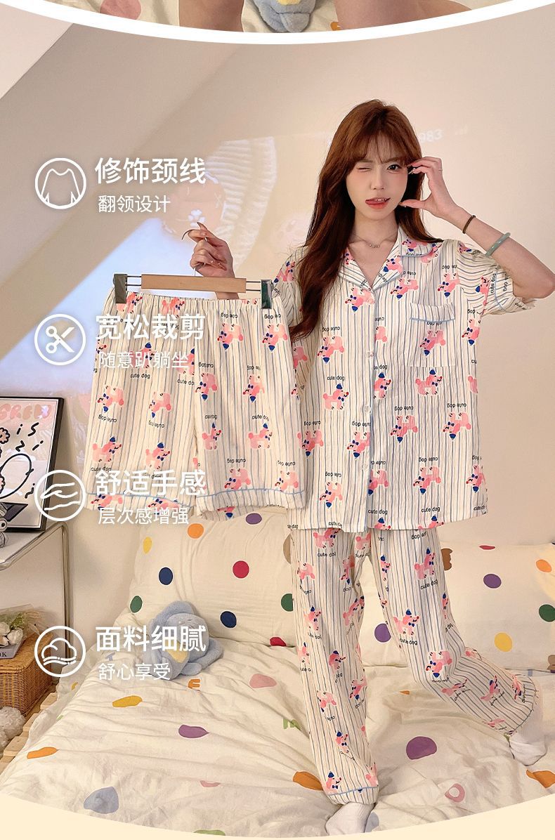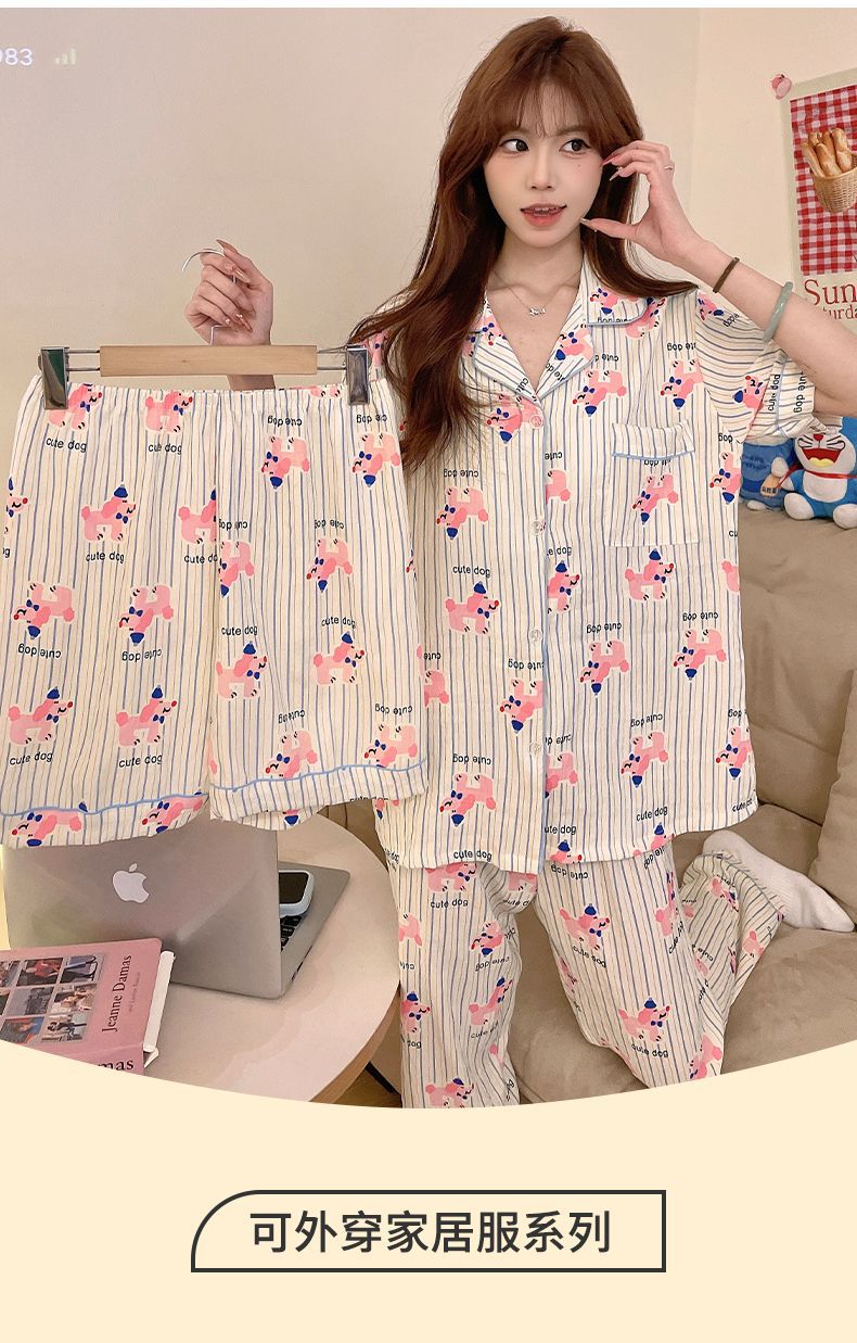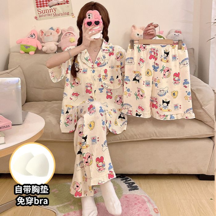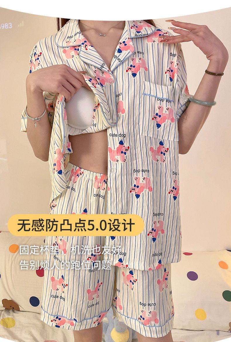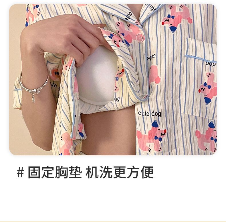클라우드 코튼 파자마 여성용 봄과 여름 의류 반팔 바지 반바지 3 피스 세트 가슴 패드 잠옷스토어 가기