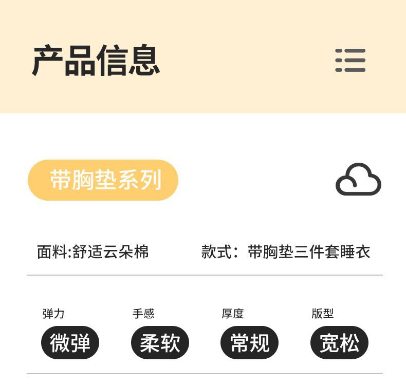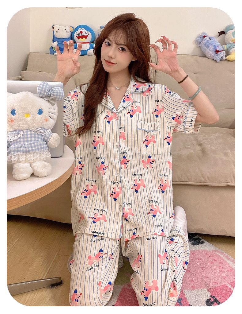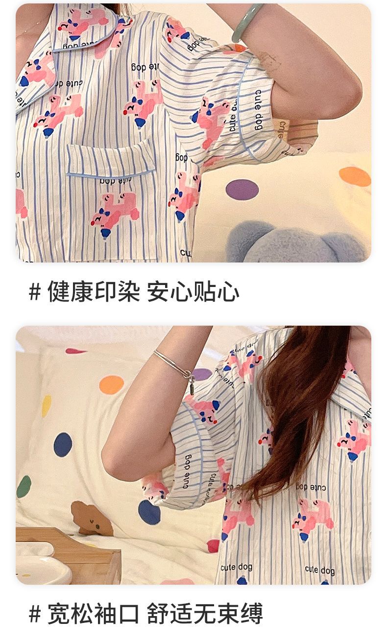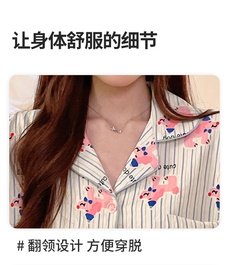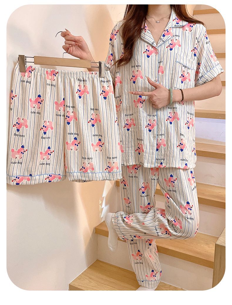 클라우드 코튼 파자마 여성용 봄과 여름 의류 반팔 바지 반바지 3 피스 세트 가슴 패드 잠옷스토어 가기