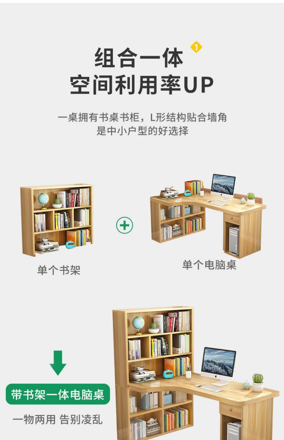 컴퓨터 데스크탑 책상 책장 통합 학생 침실 간단한 책장 조합 코너 코너 책상 작은 테이블