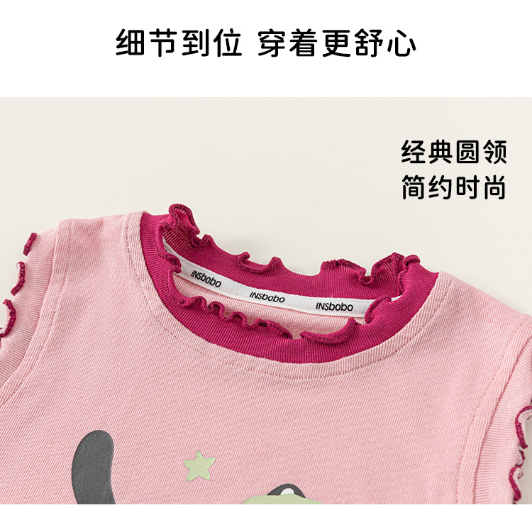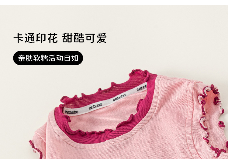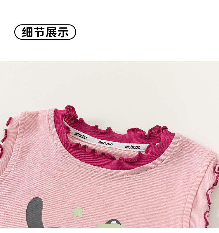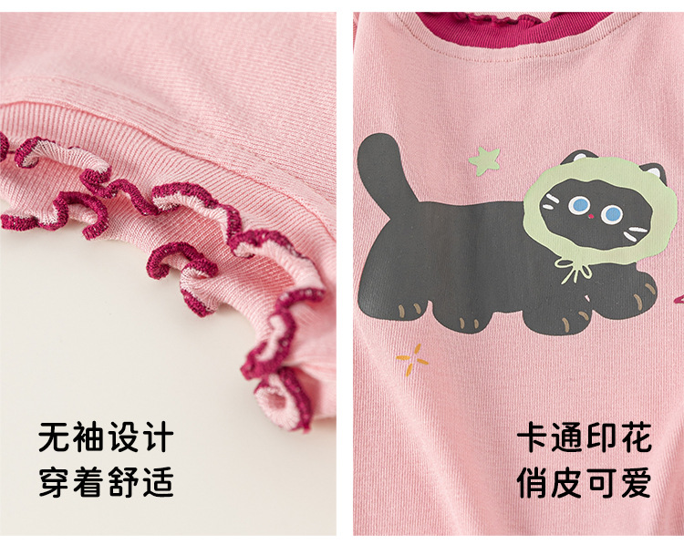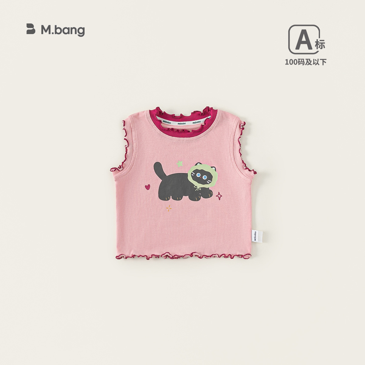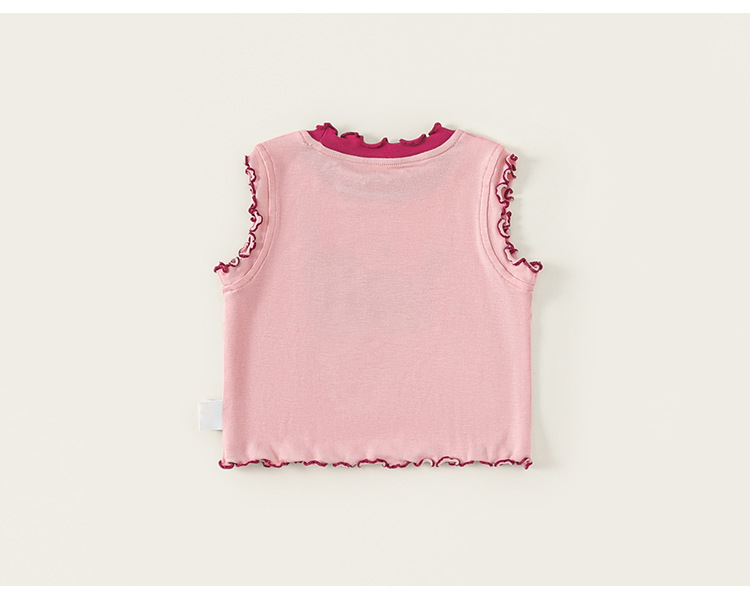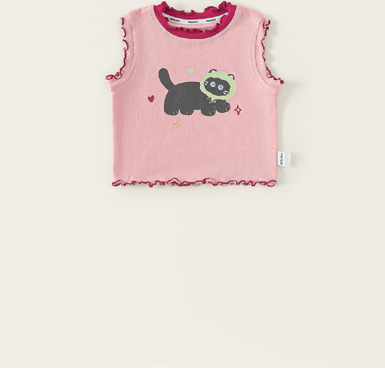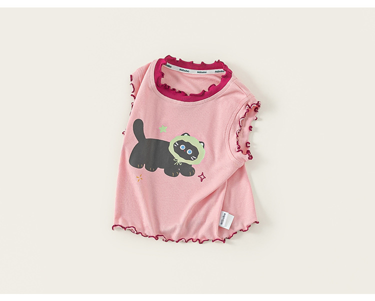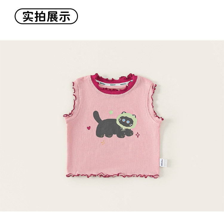 봉 선정한 아동복 여름 라운드 넥 탑 소녀의 귀 가장자리 명암 티셔츠 아기 소녀의 만화 인쇄 민소매 조끼스토어 가기