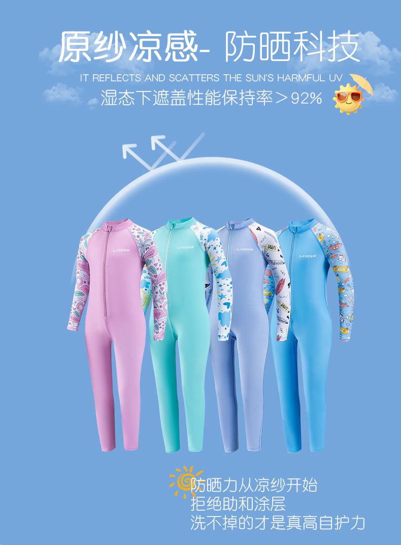 LAGCEN 어린이 수영복 새로운 원피스 속건성 수영복 중대형 소년 소녀 긴팔 전문 자외선 차단 수영복스토어 가기
