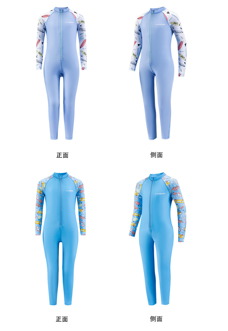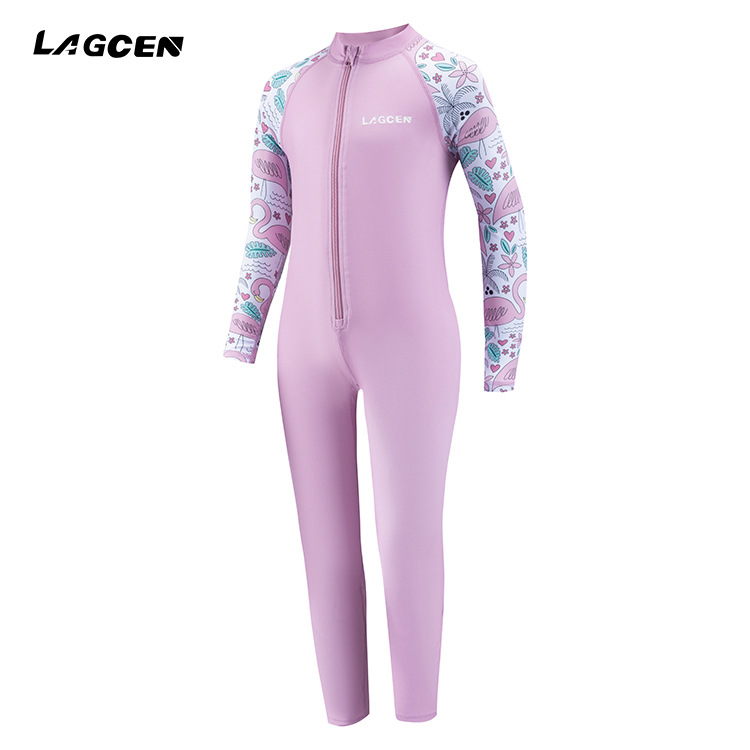 LAGCEN 어린이 수영복 새로운 원피스 속건성 수영복 중대형 소년 소녀 긴팔 전문 자외선 차단 수영복