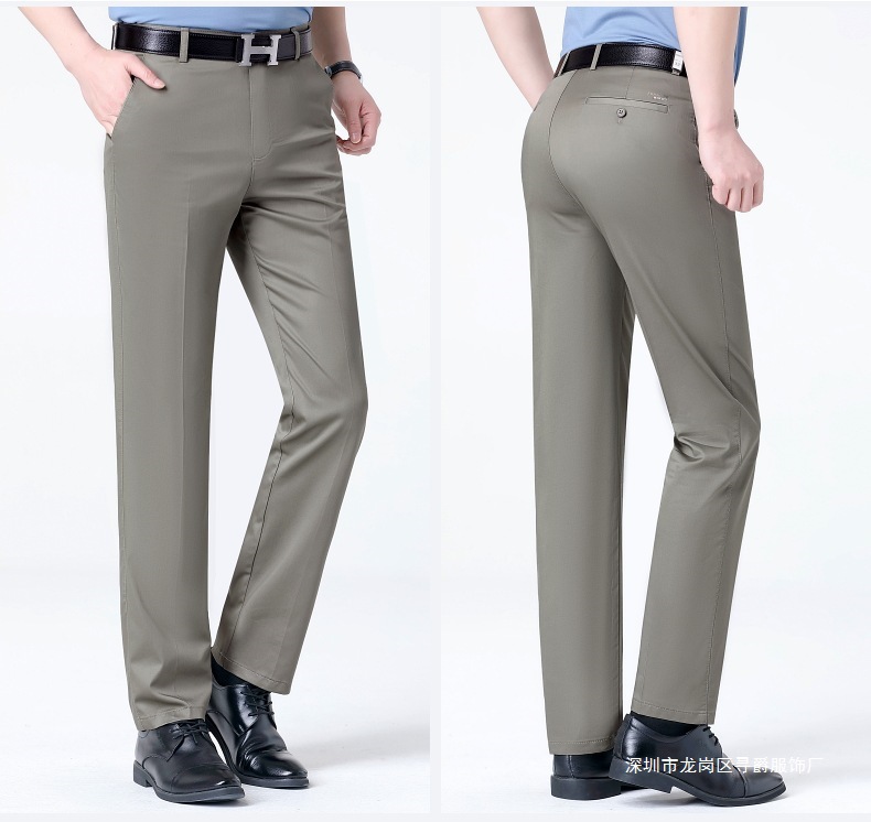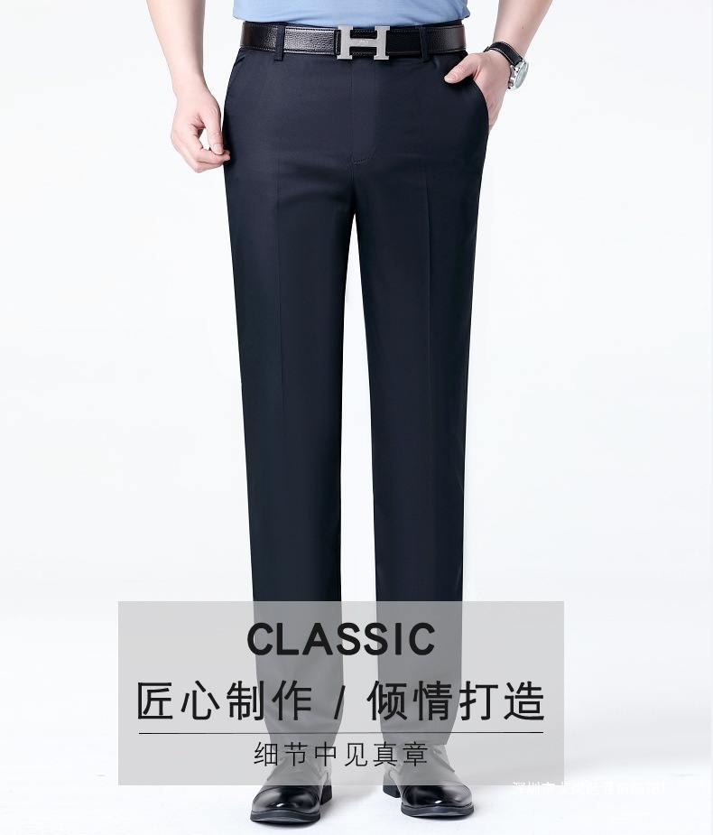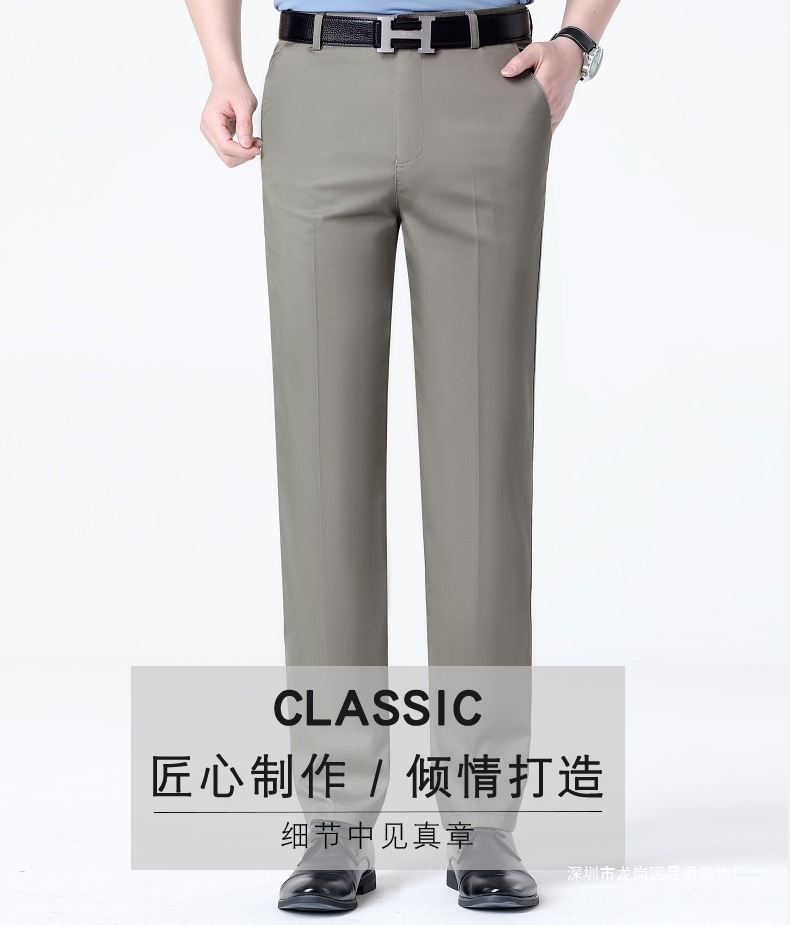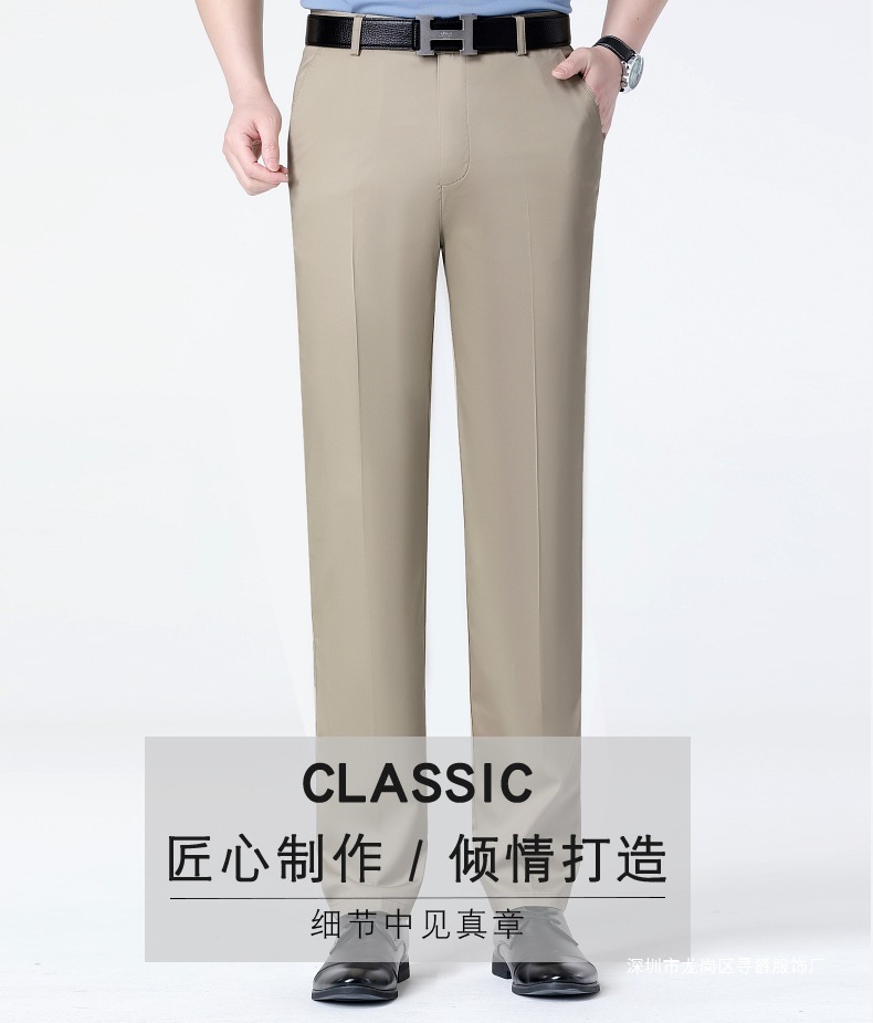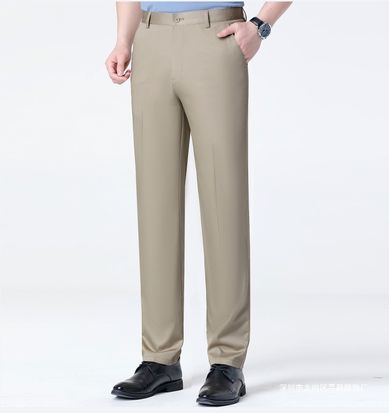 남자 캐주얼 바지 봄과 여름 얇은 중년 비즈니스 스트레이트 비 다림질 바지 아빠 느슨한 올 매치 바지스토어 가기