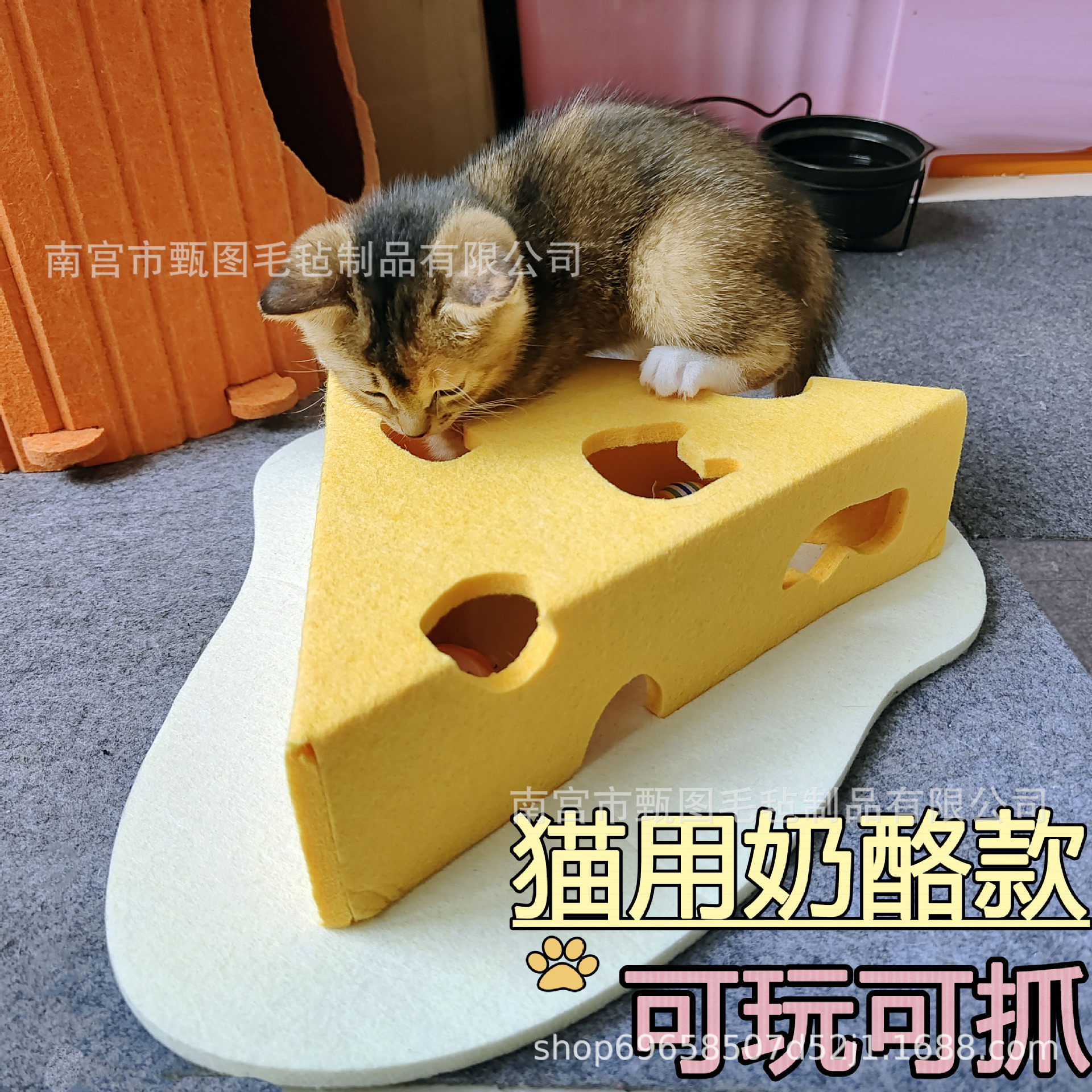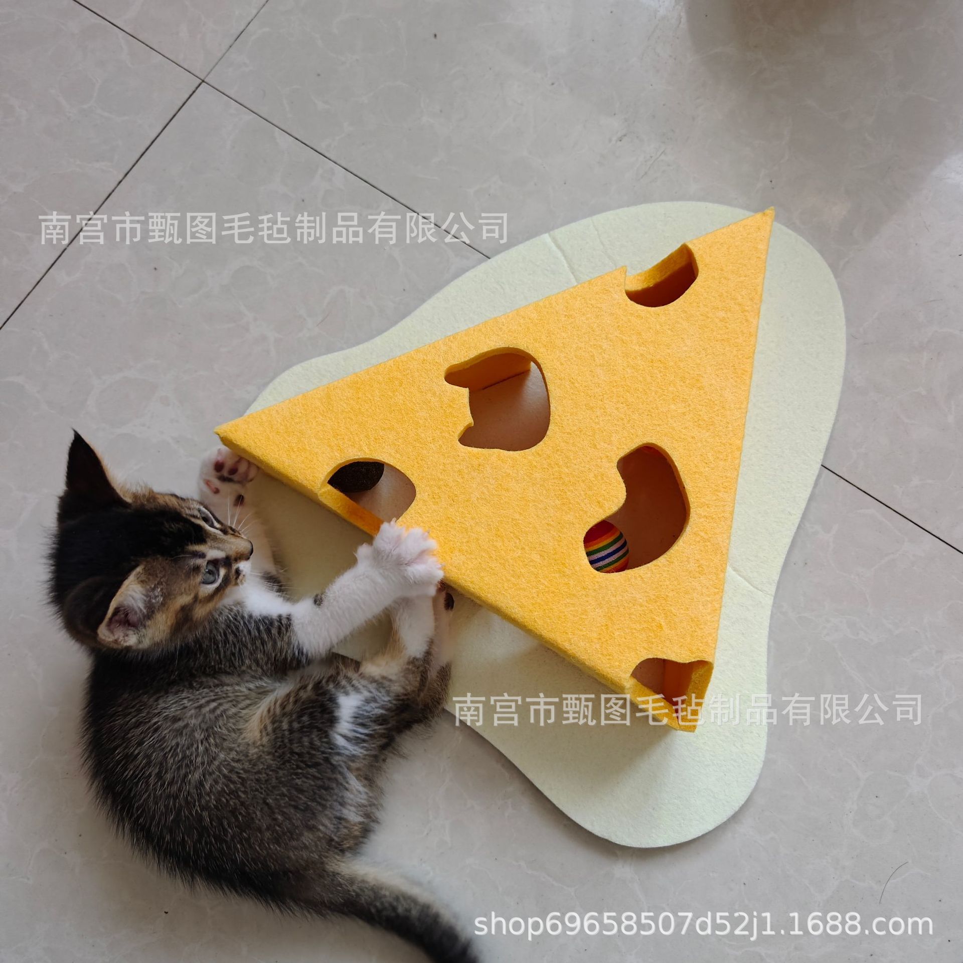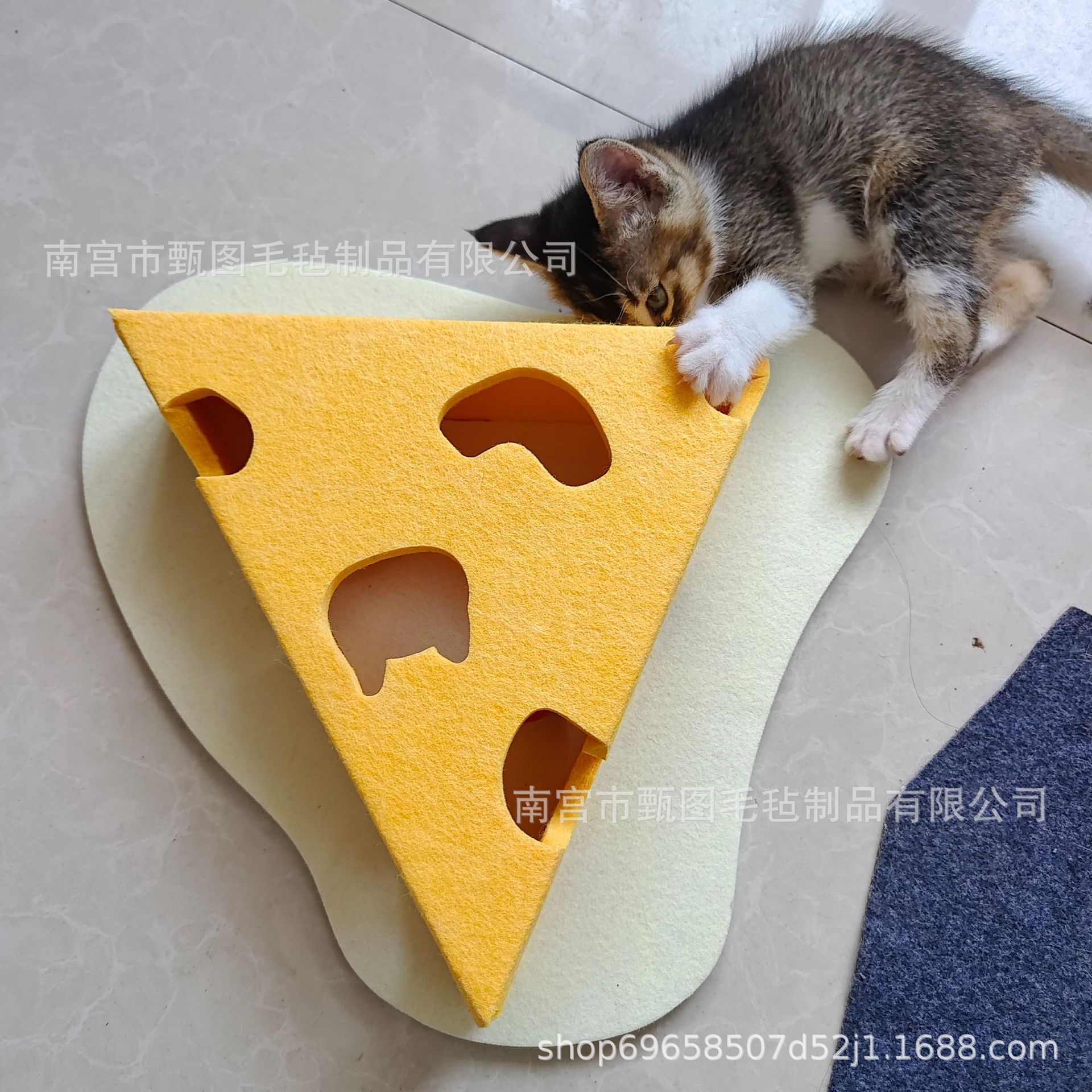 고양이 장난감 펠트 장난감 삼각형 치즈 블록 내마모성 부스러기 고양이 발톱 연삭 유물 고양이 발톱 보드스토어 가기