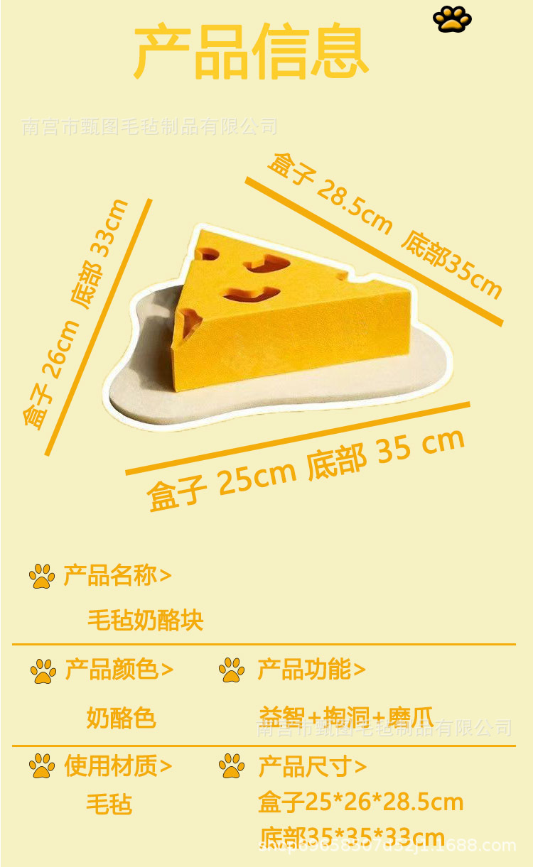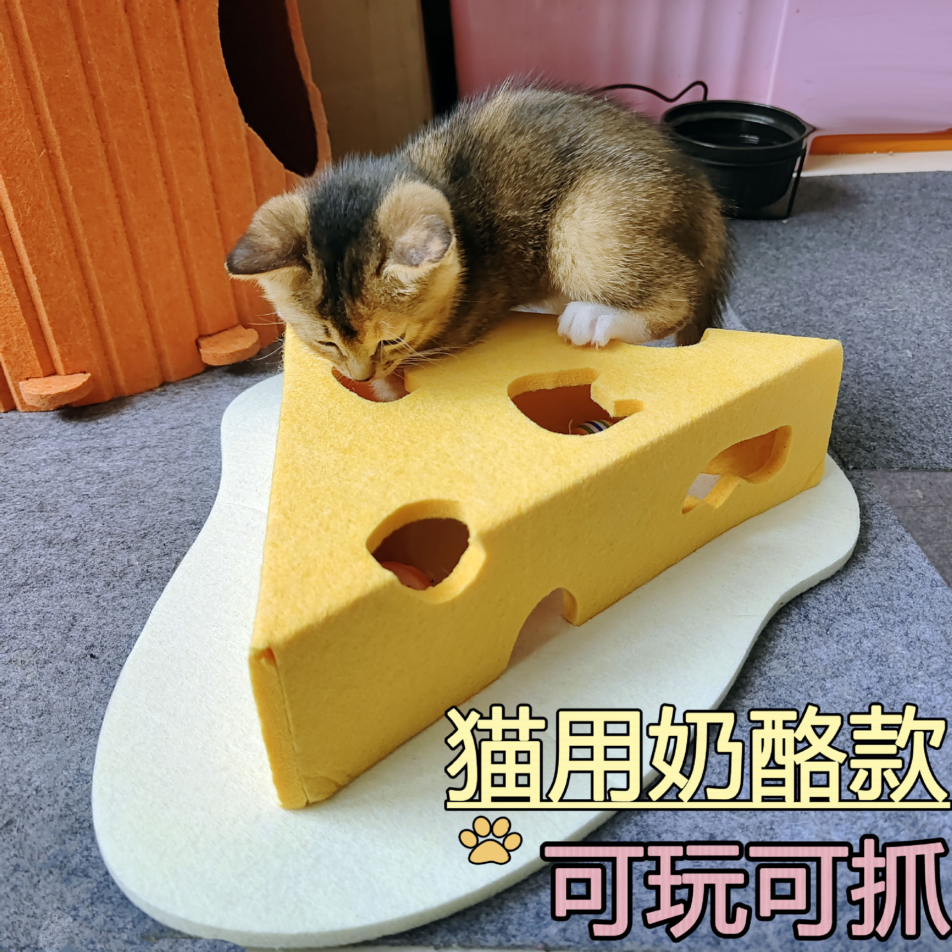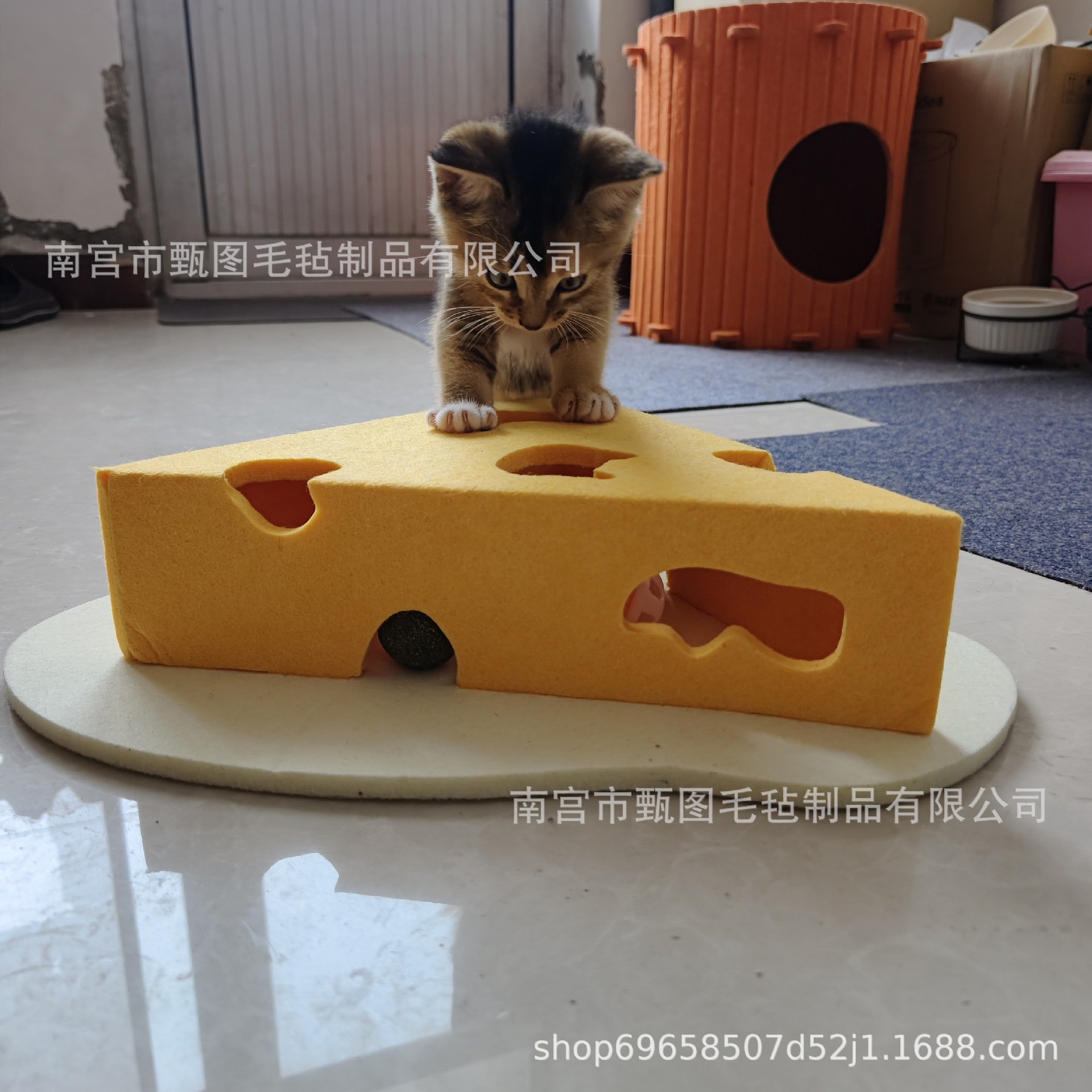 고양이 장난감 펠트 장난감 삼각형 치즈 블록 내마모성 부스러기 고양이 발톱 연삭 유물 고양이 발톱 보드스토어 가기
