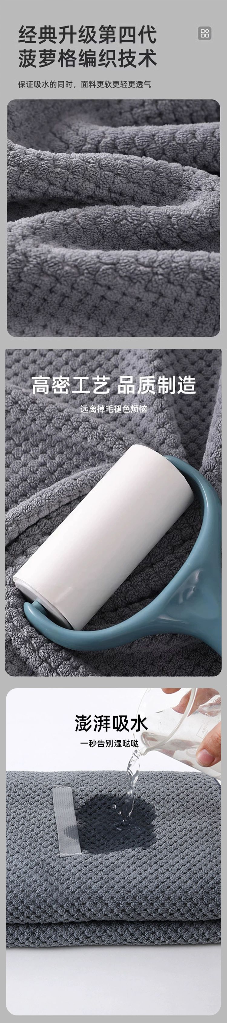 파인애플 무늬 드라이 헤어캡, 버클 없는 일체형 드라이 헤어타월, 부드럽고 흡수력 좋은 롱 목욕타월, 머리 감싸는 타월, 코랄벨벳