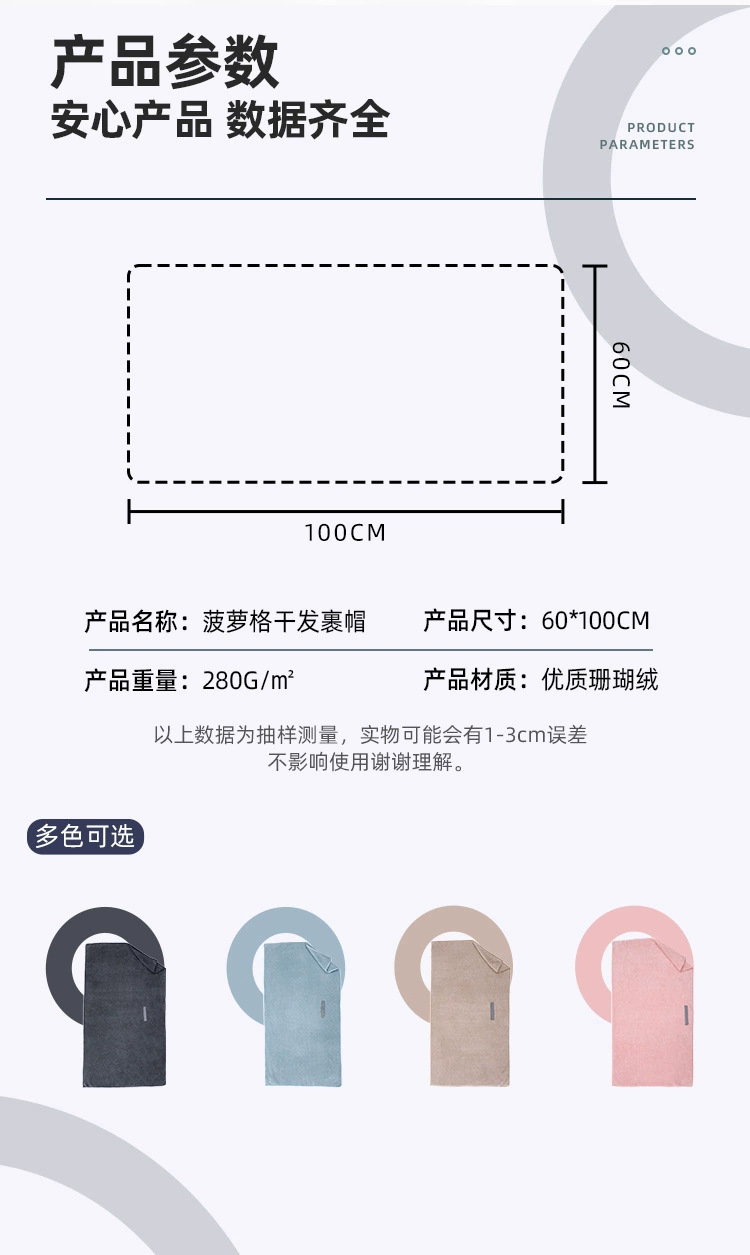 파인애플 무늬 드라이 헤어캡, 버클 없는 일체형 드라이 헤어타월, 부드럽고 흡수력 좋은 롱 목욕타월, 머리 감싸는 타월, 코랄벨벳스토어 가기