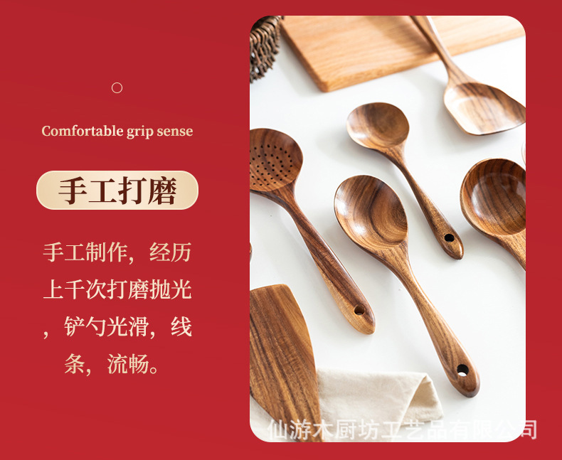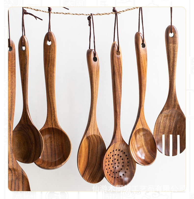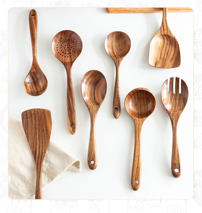 아마존 티크 아카시아 나무 주방 주걱 숟가락 숟가락 긴 손잡이 쌀 스푼 식기 세트 긴 손잡이 내구성