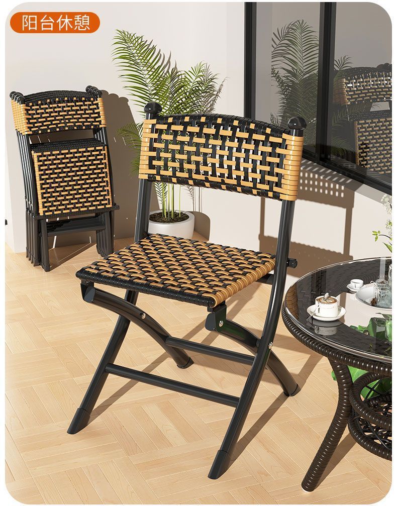 등나무 의자 발코니 레저 의자 의자 등받이 의자 땋은 등나무 가정용 접이식 의자 싱글 야외 테이블과 의자 조합스토어 가기