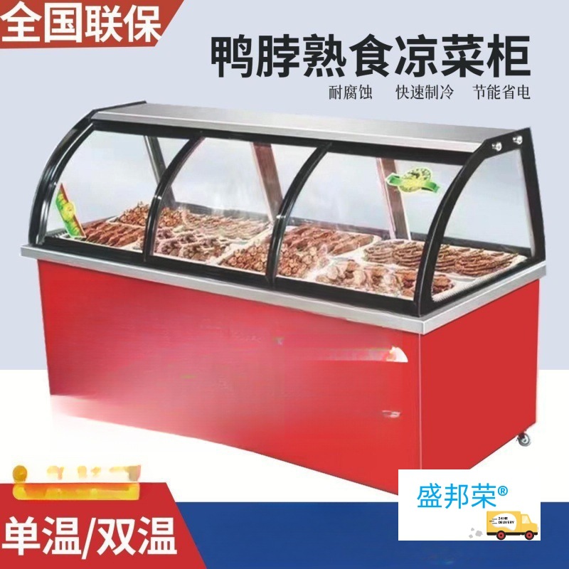 실용적인 신선도 유지 냉장 디스플레이 캐비닛, 조리된 음식, 절인 야채, 냉장 야채, 바베큐 냉동 오리 목, 단일 온도 직접 냉각 상업용 주문 캐비닛