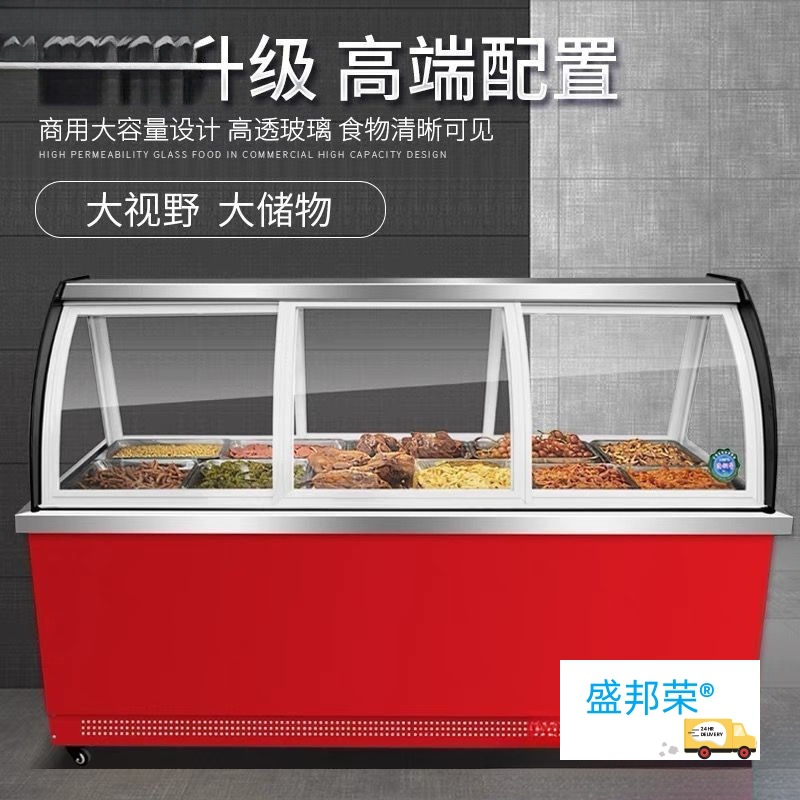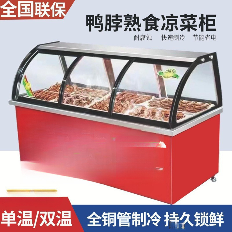 실용적인 신선도 유지 냉장 디스플레이 캐비닛, 조리된 음식, 절인 야채, 냉장 야채, 바베큐 냉동 오리 목, 단일 온도 직접 냉각 상업용 주문 캐비닛스토어 가기