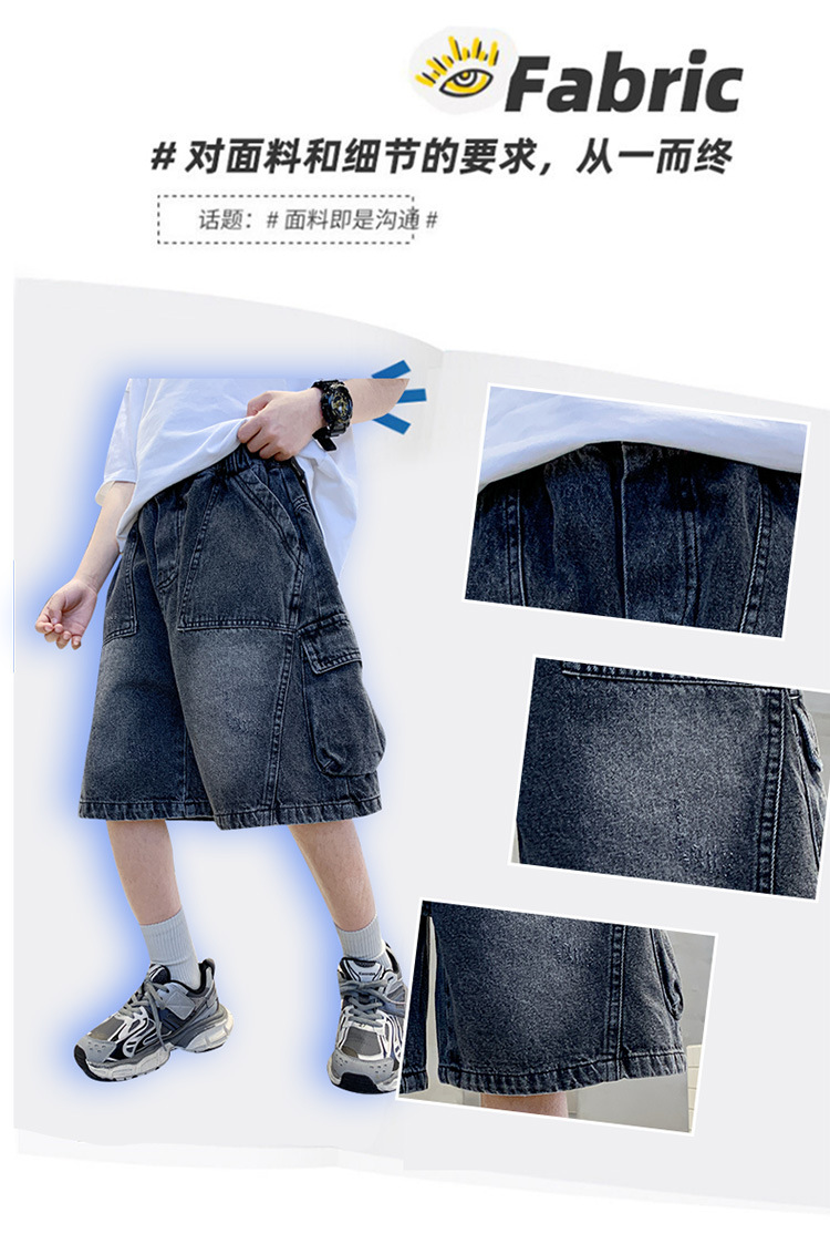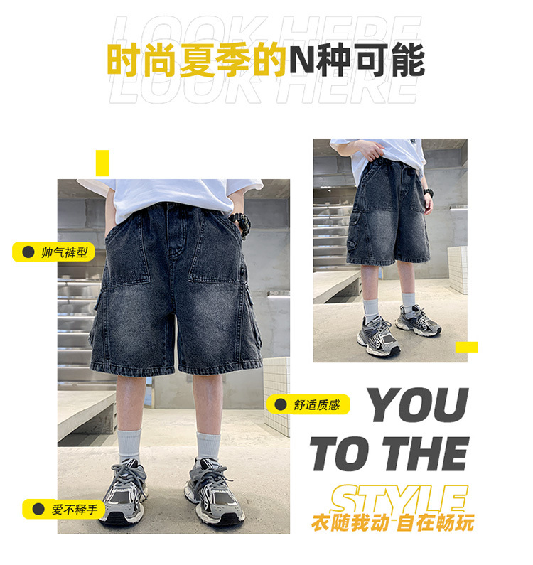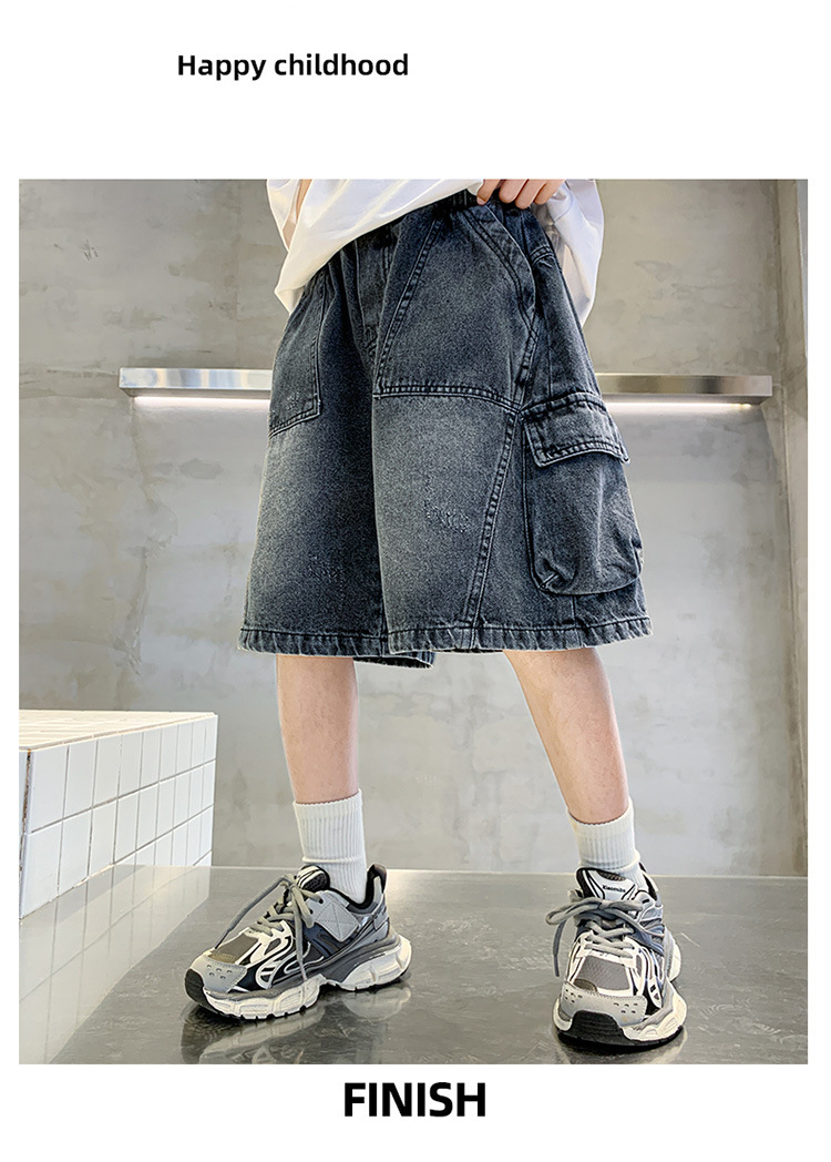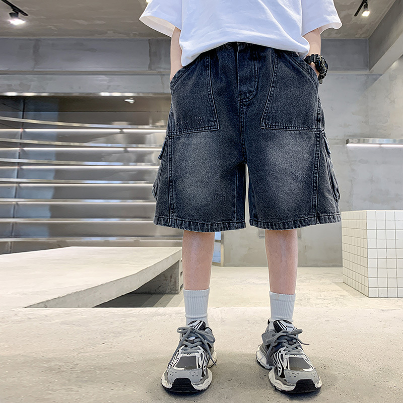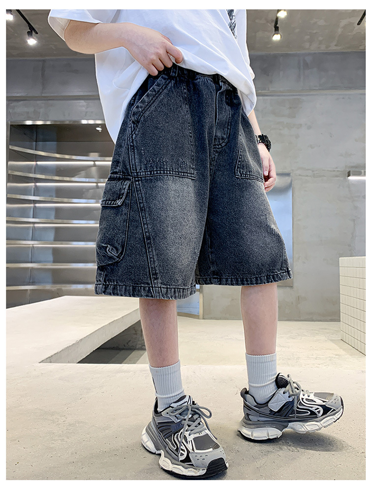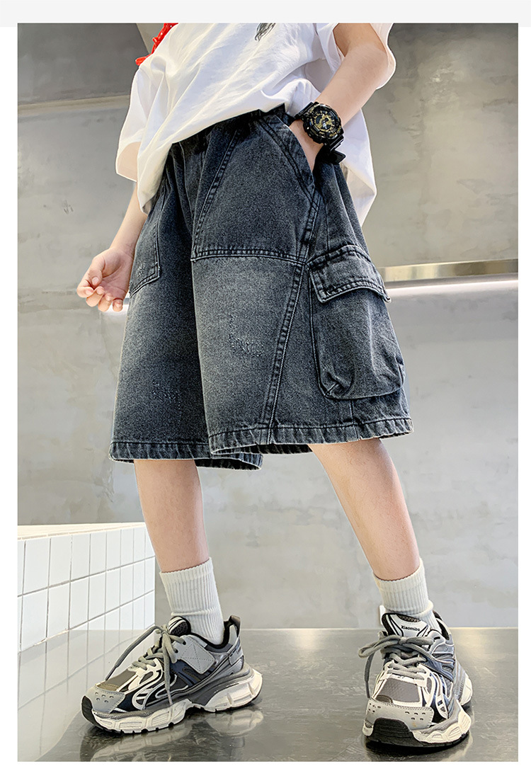 남아 데님 반바지 여름 얇은 모델 2025 신상 중대형 어린이 남아용 루즈핏 반바지 공장 직판스토어 가기