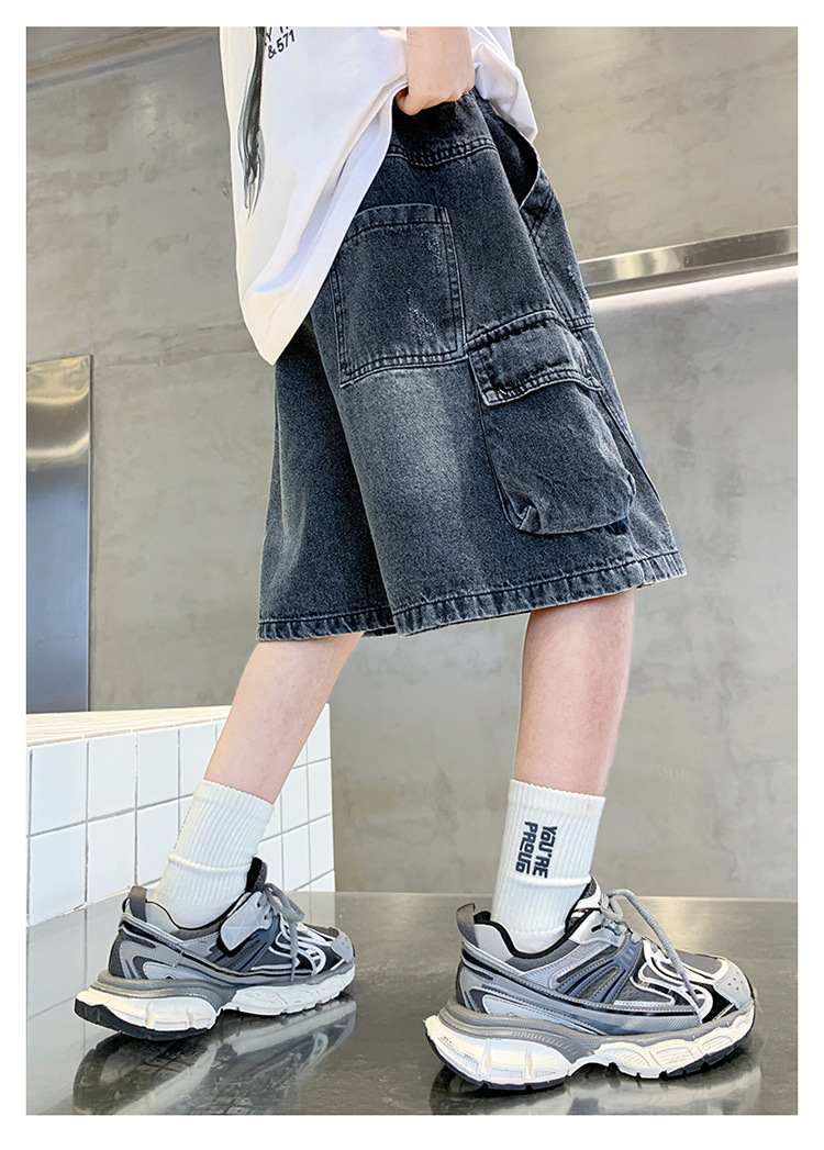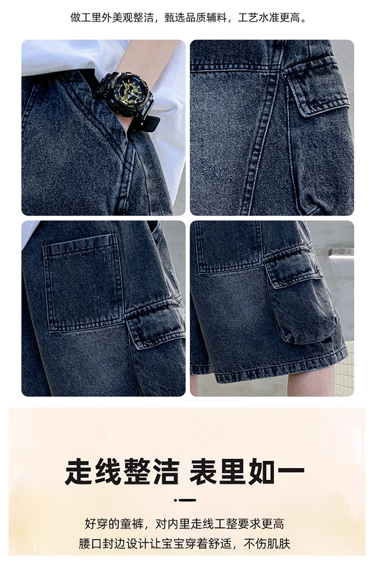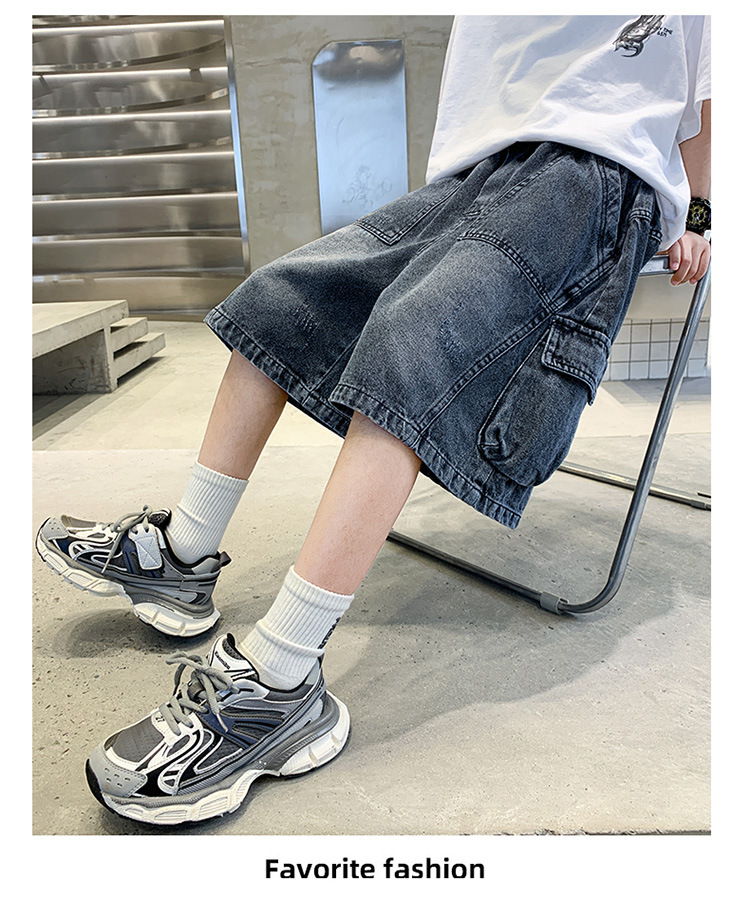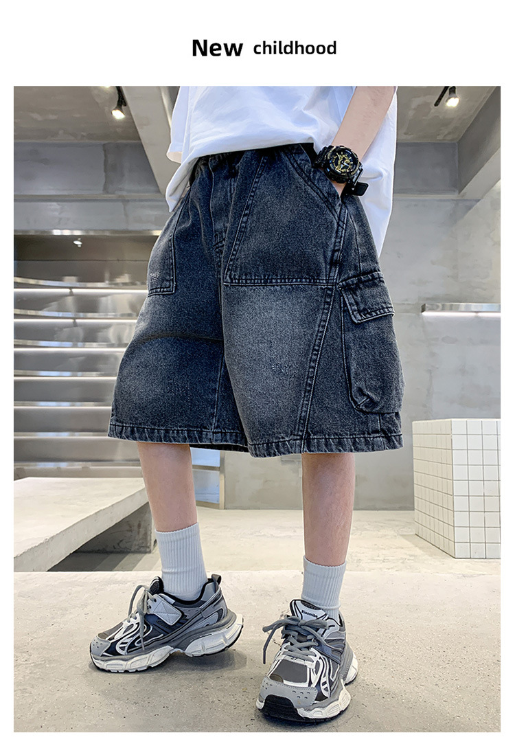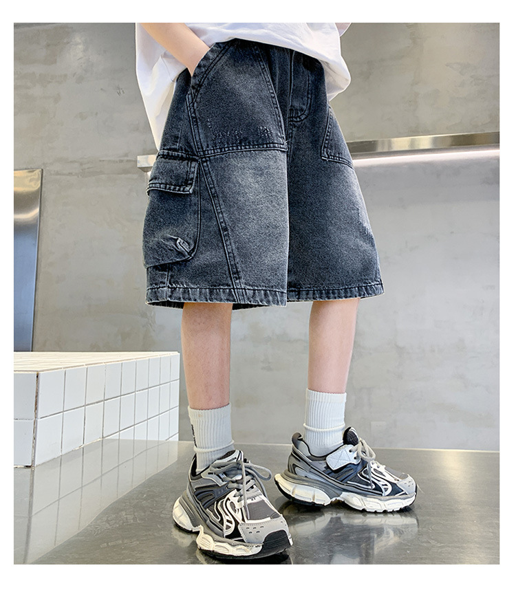 남아 데님 반바지 여름 얇은 모델 2025 신상 중대형 어린이 남아용 루즈핏 반바지 공장 직판스토어 가기