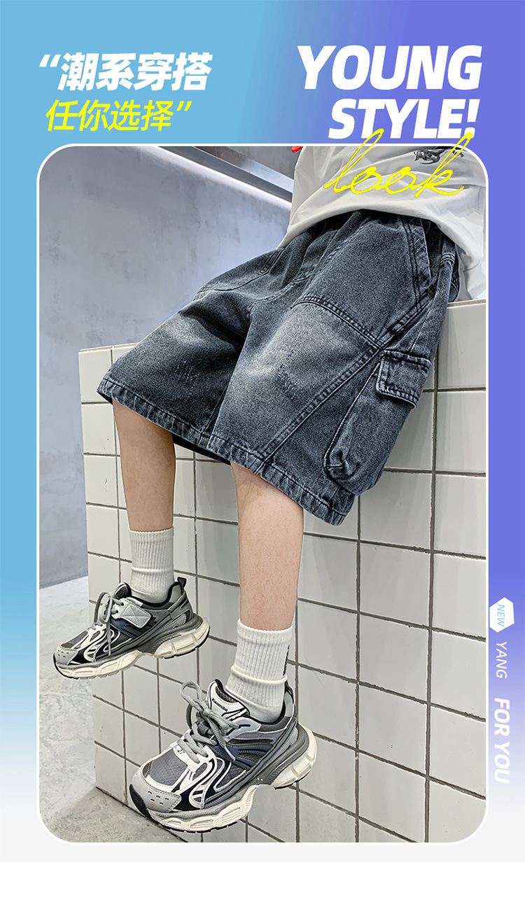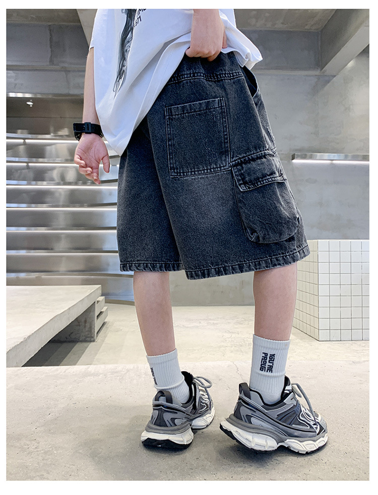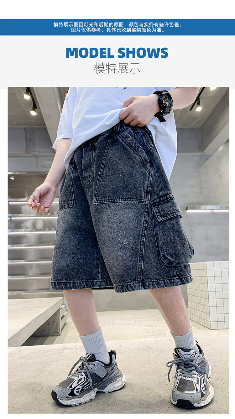 남아 데님 반바지 여름 얇은 모델 2025 신상 중대형 어린이 남아용 루즈핏 반바지 공장 직판