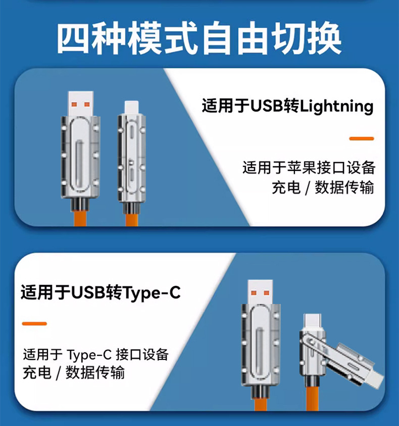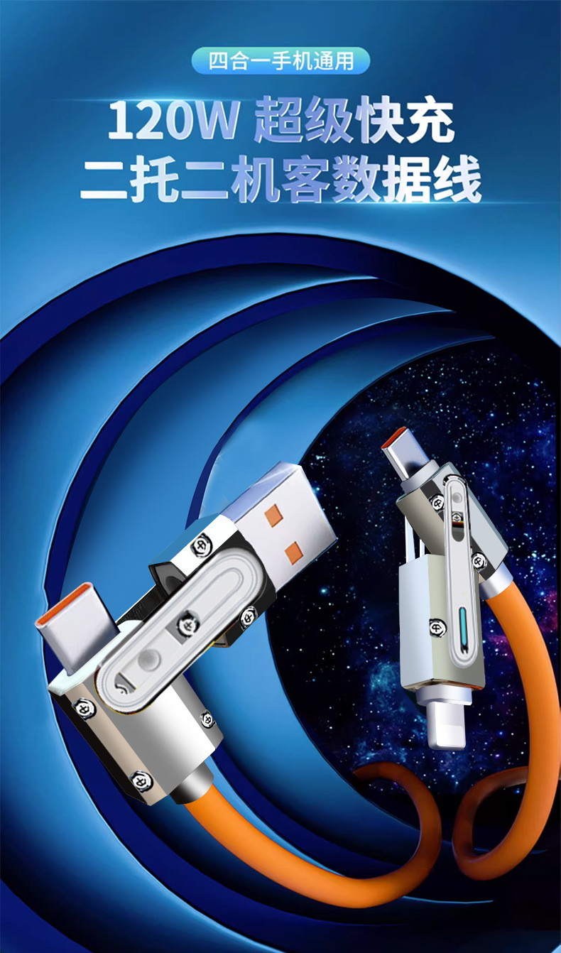 2 대 2 데이터 라인 액체 실리콘 PD 다기능 더블 헤드 TYPE-C 초고속 충전 100w 충전 라인 도매스토어 가기