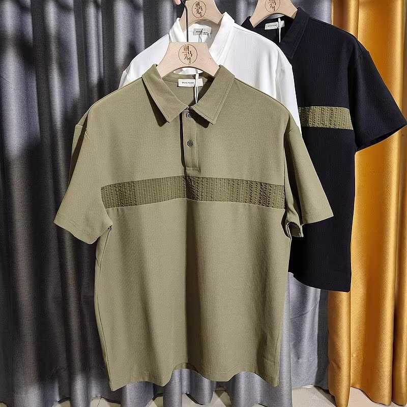 하이 엔드 대비 색상 폴로 셔츠 남성용 반팔 트렌디 브랜드 슬림 반팔 티셔츠 2025 뉴 여름 남성 티셔츠
