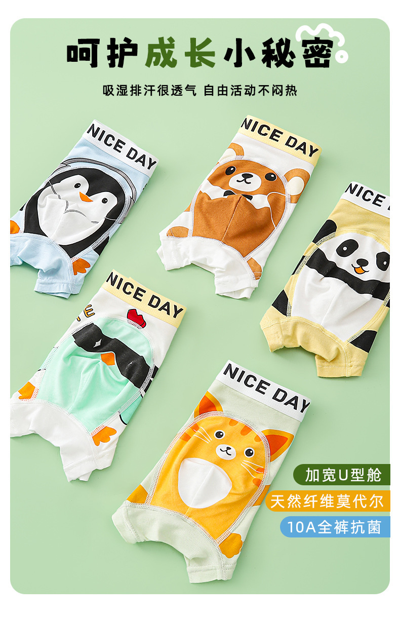 Tyne Bear 어린이 속옷 소년 모달 복서 10A 항균 소년 반바지 어린이 만화 동물