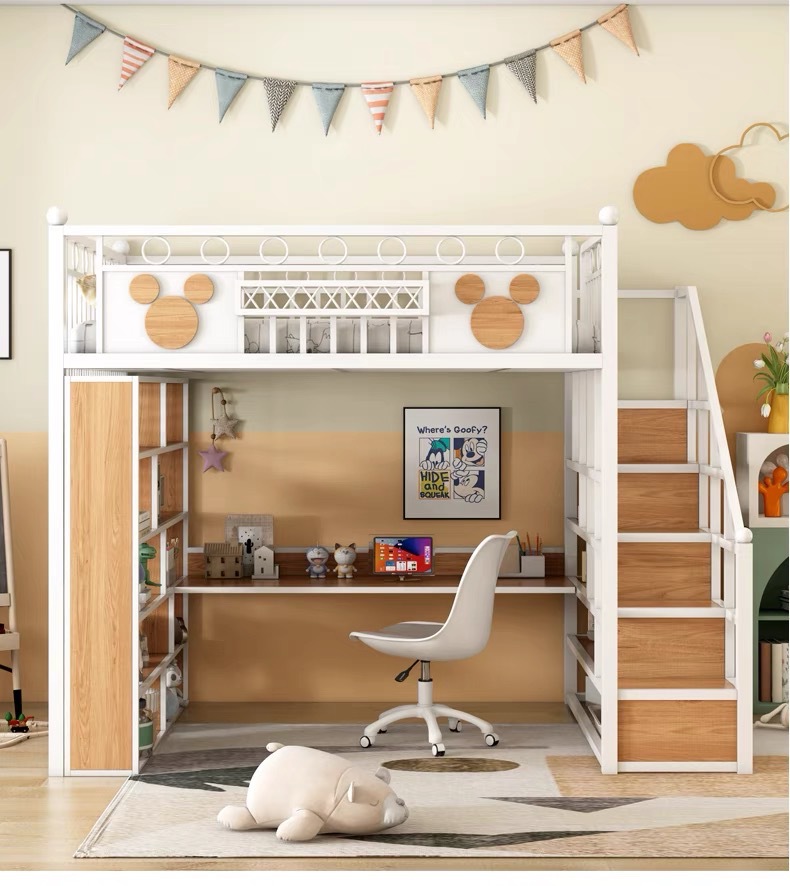 단철 이층 침대, 어린이용 이층 침대, 이층 침대, 사다리, 울타리, 이층 침대, 테이블이 결합된 이층 침대