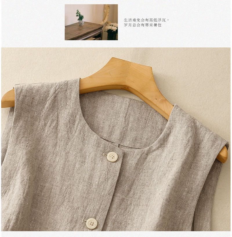 봄과 여름 2025 새로운 솔리드 컬러 빈티지 예술적 면화와 리넨 캐주얼 올매치 우아한 조끼스토어 가기