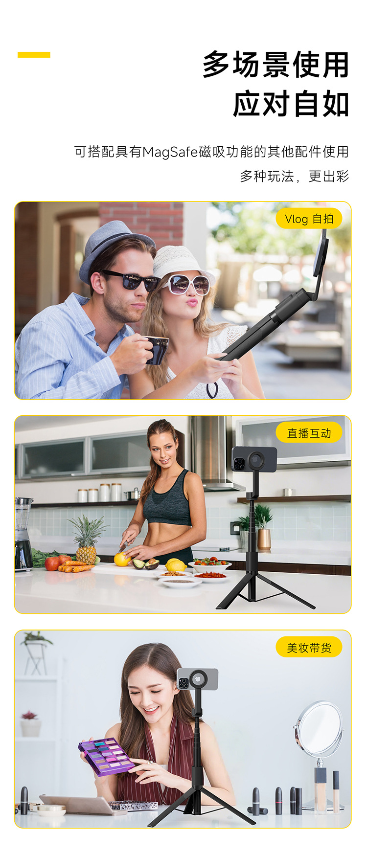 마그네틱 셀카 스틱 MagSafe 휴대 전화 홀더 블루투스 라이브 vlog 삼각대 휴대 전화 삼각대스토어 가기