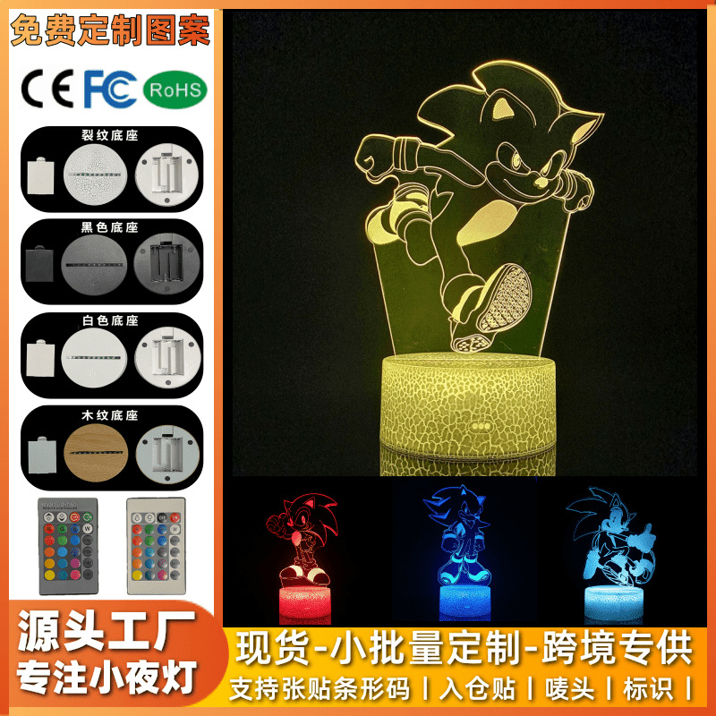 국경 간 만화 다채로운 분위기 테이블 램프 생일 선물 소닉 소년 모양 LED 에너지 절약 창조적 인 3D 야간 조명스토어 가기