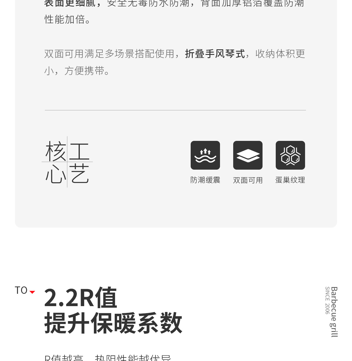 • 다크 나이트 블랙: R 값 2.2(단일 계란 둥지 패드)