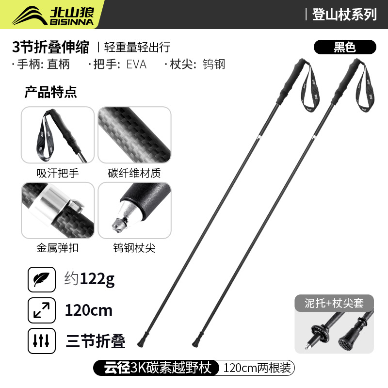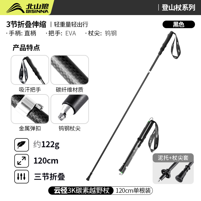 Beishanlang 크로스 컨트리 스틱 전문 야외 초경량 탄소 섬유 텔레스코픽 접이식 스틱 남성과 여성의 경량 장비 등산 스틱스토어 가기