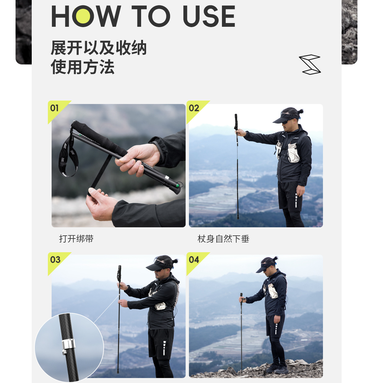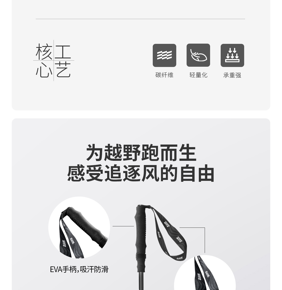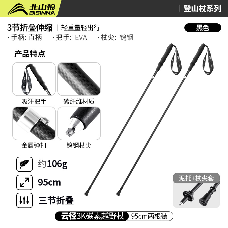 Beishanlang 크로스 컨트리 스틱 전문 야외 초경량 탄소 섬유 텔레스코픽 접이식 스틱 남성과 여성의 경량 장비 등산 스틱
