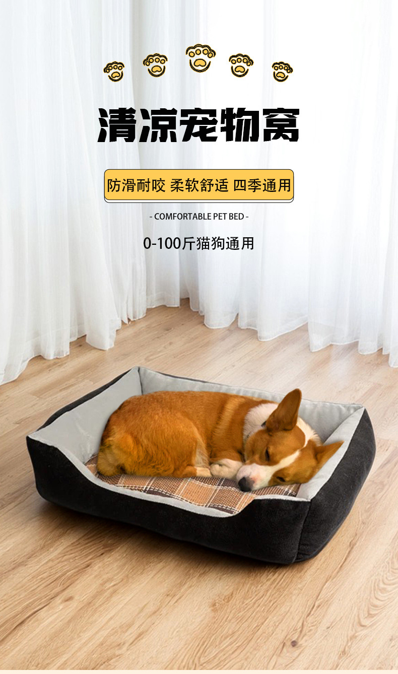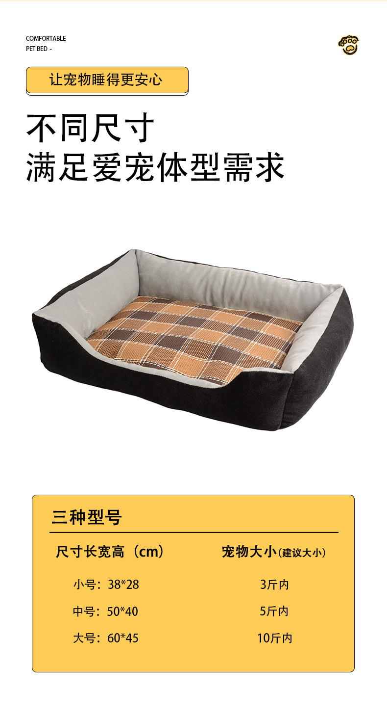 고양이와 강아지를 위한 사계절용 사각 매트, 탈부착 및 세탁 가능한 시원한 매트, 강아지 수면 매트, 겨울철 따뜻한 애완동물 침대